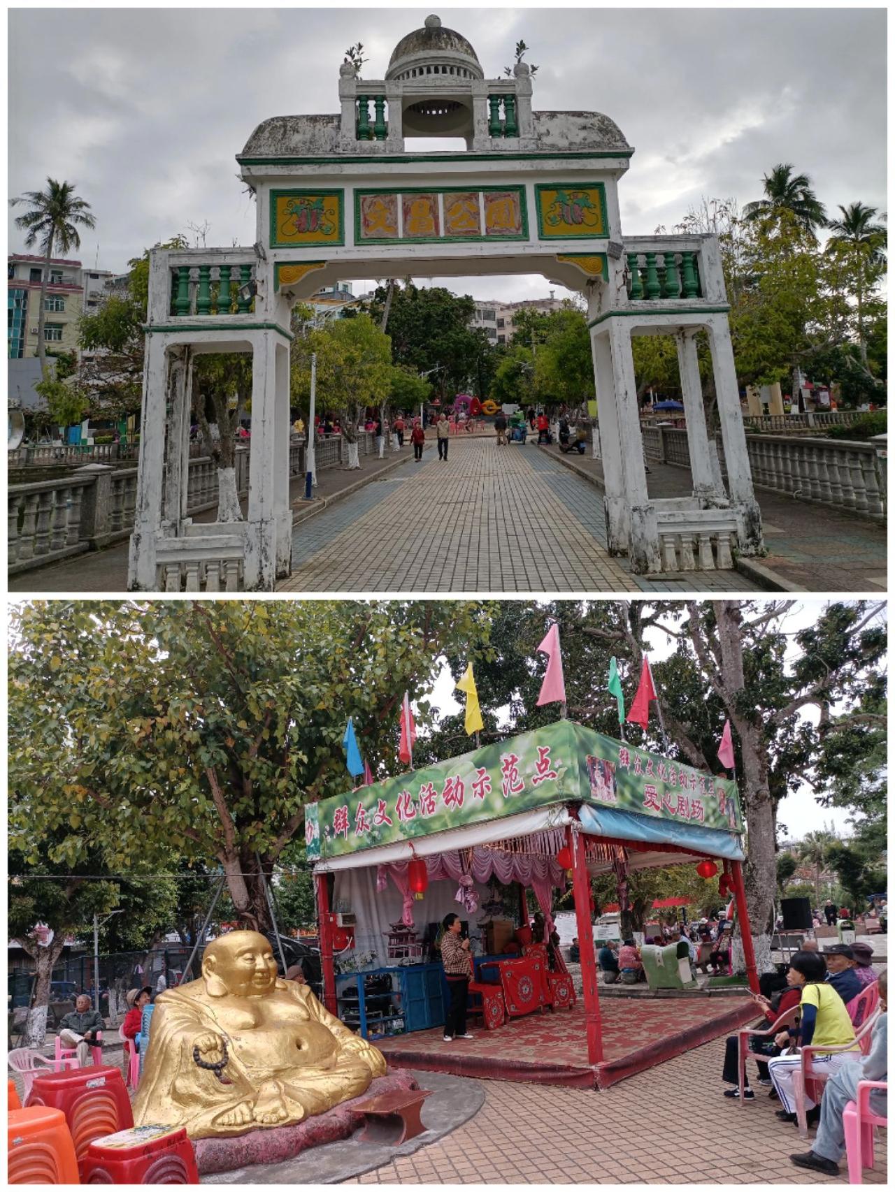 去文昌公园首先被马路边的自由市场所吸引(图1),儿时的感觉袭来,这里没有城管,好好好!这一点比杭州有烟火气。 文昌公园面积不小,有小戏台(图2),有绿荫环绕的湖水(图3),和楼台亭阁(图4),艺术雕塑(图5),是一应俱全的城市公园;也是市民游玩休闲的好地方。广场舞分好几拨,音乐声嘈杂起伏,音量开得震天响,震得我们落荒而逃,音量不能放低一点?如此不文明,广场舞被人讨厌、投诉也就不足为奇了。 起先我们走过宏光寺老庙,百年尘迹油然而生,关门告之搬新址;来到新的宏光寺,以为是伊斯兰清真寺,创意奇特,几代后以为寺庙就是这个样子了[捂脸]。 文昌 公园散步随拍 古建筑之美 旅行