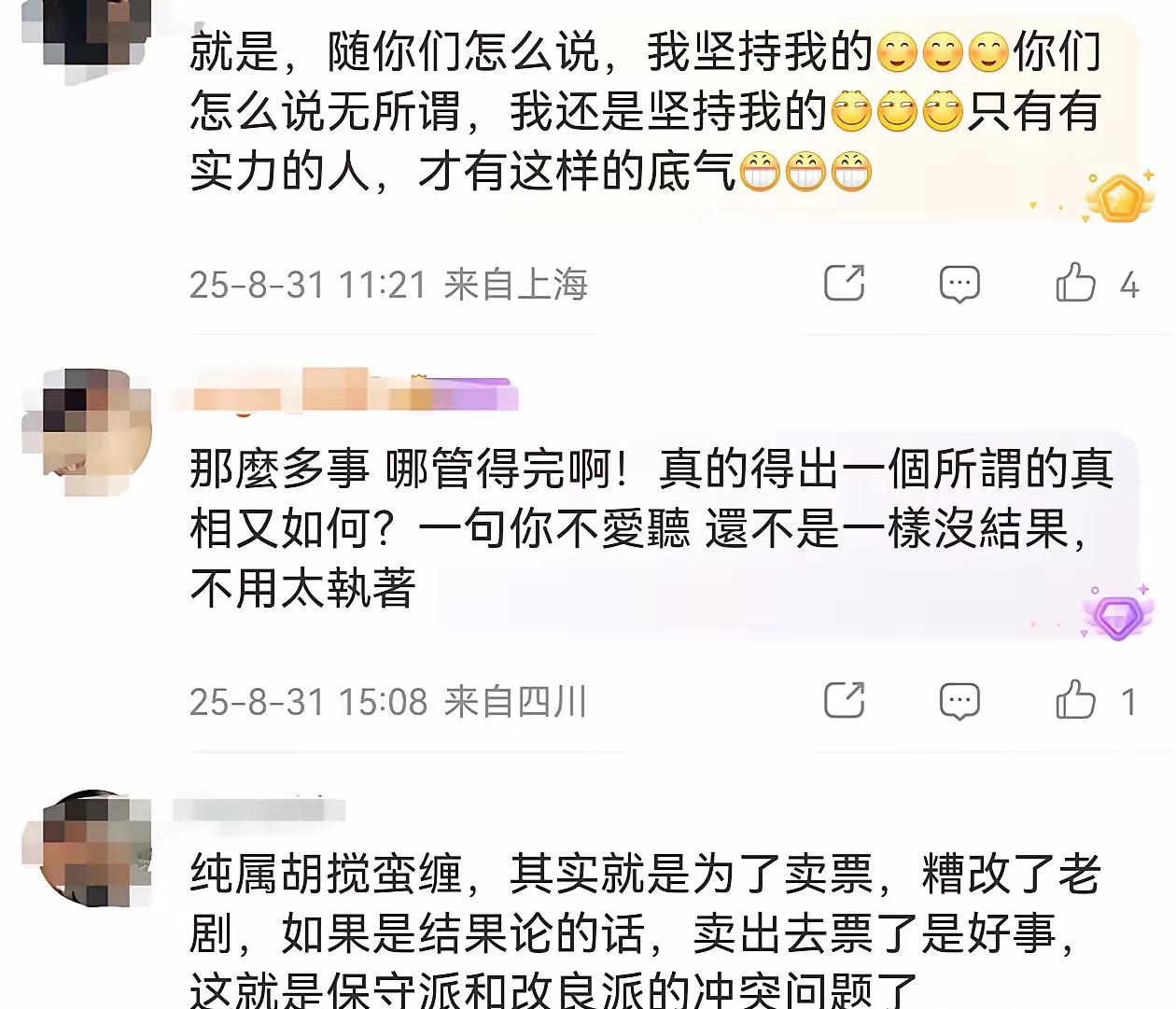 郭德纲,直接硬刚! 2月11日,郭德纲突然冲上了热搜,这次他不再客气,一段话字里行间都是不屑和自我认可:“好多人说,郭德纲在创新京剧,或者说郭德纲在糟改京剧,台上用了好多相声东西,我只能说是你没见过。…” 起因是,有人质疑郭德纲是在“糟蹋国粹”,他直接硬刚:“我用的都是八十年前京剧舞台上用剩下的东西,不是创新是复古”,一句话把争议拉到了新高度。 其实老郭这话并非随口说,他创办的麒麟剧社里,舞台吊威亚、穿插VCR这些被吐槽“太新潮”的操作,都是民国时期京剧舞台就有的技巧,就连台上抖包袱逗乐,也是百年前的演法。 可他的京剧表演确实争议拉满,专业圈直言他是“票友水平”,唱腔有梆子味、跨行当表演不规范,还总把相声包袱、流行歌词揉进戏里,被批“相声入侵京剧”。 但另一边,他的京剧商演火到离谱,1280元的VIP票秒空,黄牛价炒到3000元仍抢疯,年轻观众举着荧光棒听戏,愣是让小众老戏破了圈。 有人说他的麒麟剧社是“京剧界的苍蝇馆子”,没那么多规矩却能拉来更多观众;也有老戏迷觉得他乱改规矩,丢了京剧的庄重。说到底,老郭的复古京剧,到底是盘活国粹的新路子,还是博眼球的噱头,恐怕还得让市场和时间慢慢评说。 网友纷纷表示: 我是完全不懂戏曲,就是一点点都不懂的那种,我听过的都是郭德纲相声里的,要不是郭德纲唱,我听都不会听。我不知道他唱得专不专业,这些专业的评价我不懂,我只知道郭德纲让很多不听戏曲的也能听一点,所以他对戏曲传播是有很大贡献的。 他唱京剧不是因为他唱得好,而是他的名气能够带动京剧的曝光。像一些演员,演戏很好,唱歌很一般,但是他上综艺唱歌就是有人看。 成王败寇,老郭和徒儿们唱的再不好,只能说专业水准不高,但人气旺,带动了京剧的人气,是王者。专业京剧团体水平再高没人看,养活不了自己,得国家养活,那就是败寇。