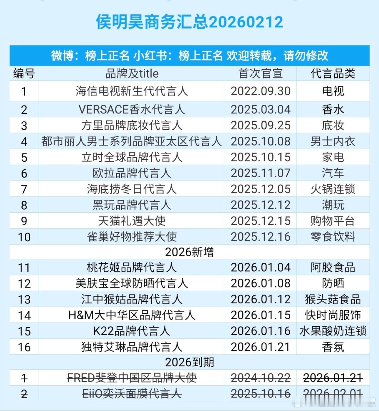 侯明昊最新商务汇总,这吃的啥红利🤔