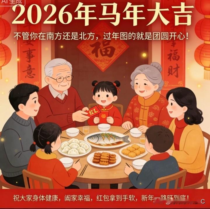 天南地北大拜年不管你在南方还是北方,过年图的就是团圆开心!祝大家马年大吉,身体健康,阖家幸福,红包拿到手软,新年一路旺到底!