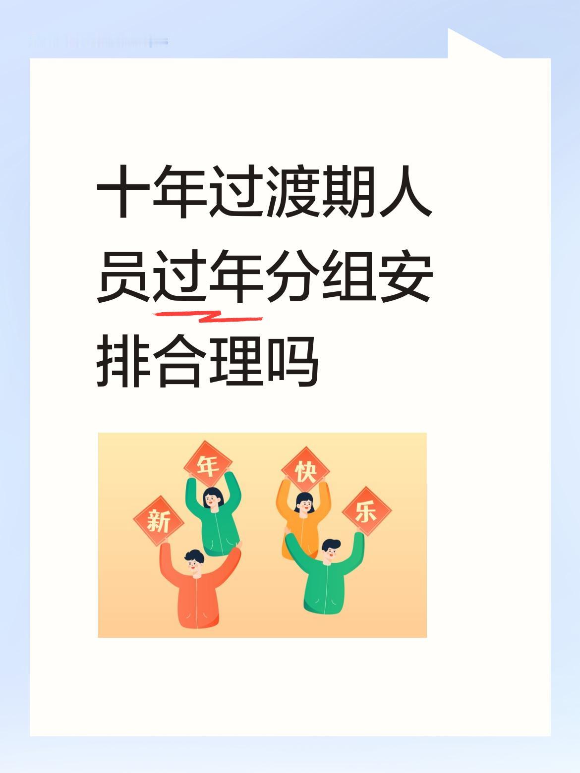 十年过渡期人员过年分组安排合不合理,得先看看这“十年过渡期”是咋回事。在机关事业单位养老并轨改革里,2014年10月1日改革前工作、改革后退休的人员,有个2014年10月到2024年9月的“十年过渡期”。设置它是为了制度转换、待遇平稳过渡和新老办法衔接。 至于过年分组,若按不同退休情况分组,能让同情况的人聚一起交流养老政策啥的,倒也合理。但要是分组标准不科学,比如没照顾到大家的意愿,就会让人觉得不合理。所以这分组合不合理,关键得看分组依据和目的。