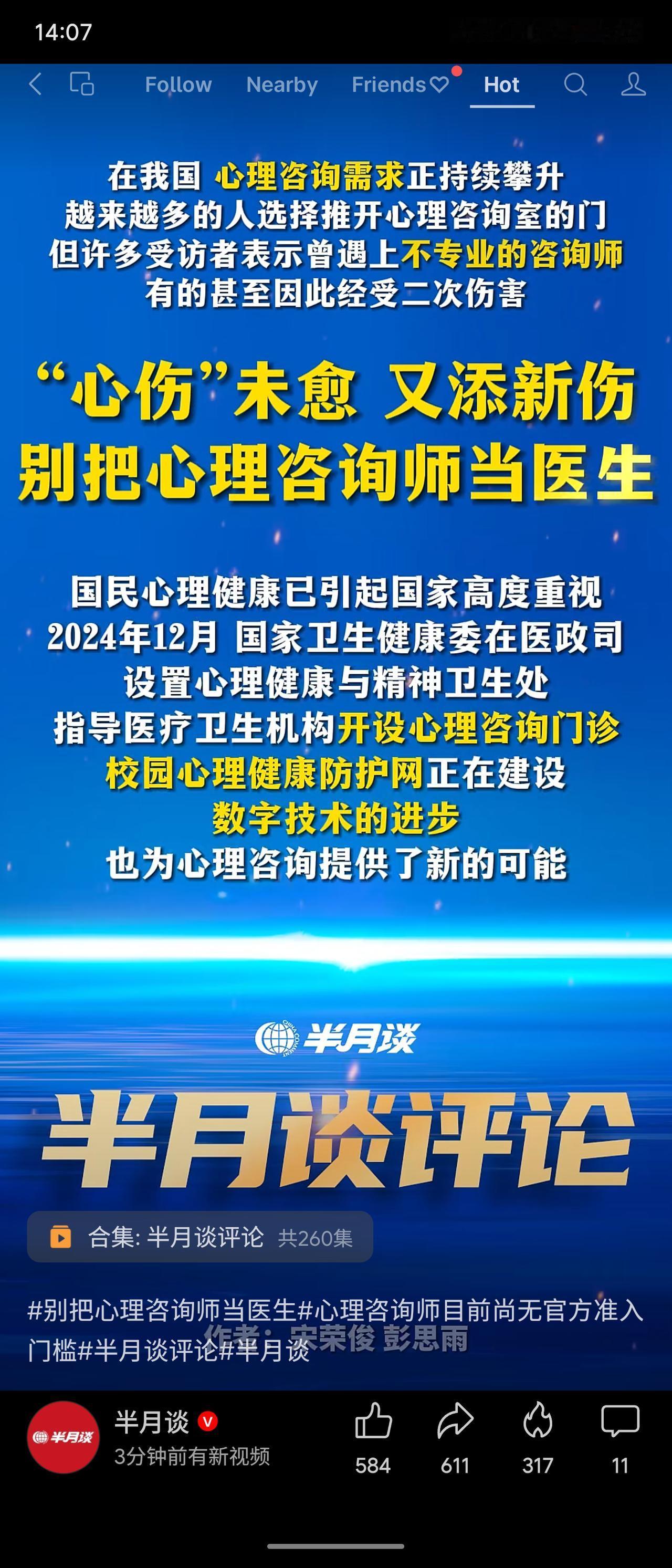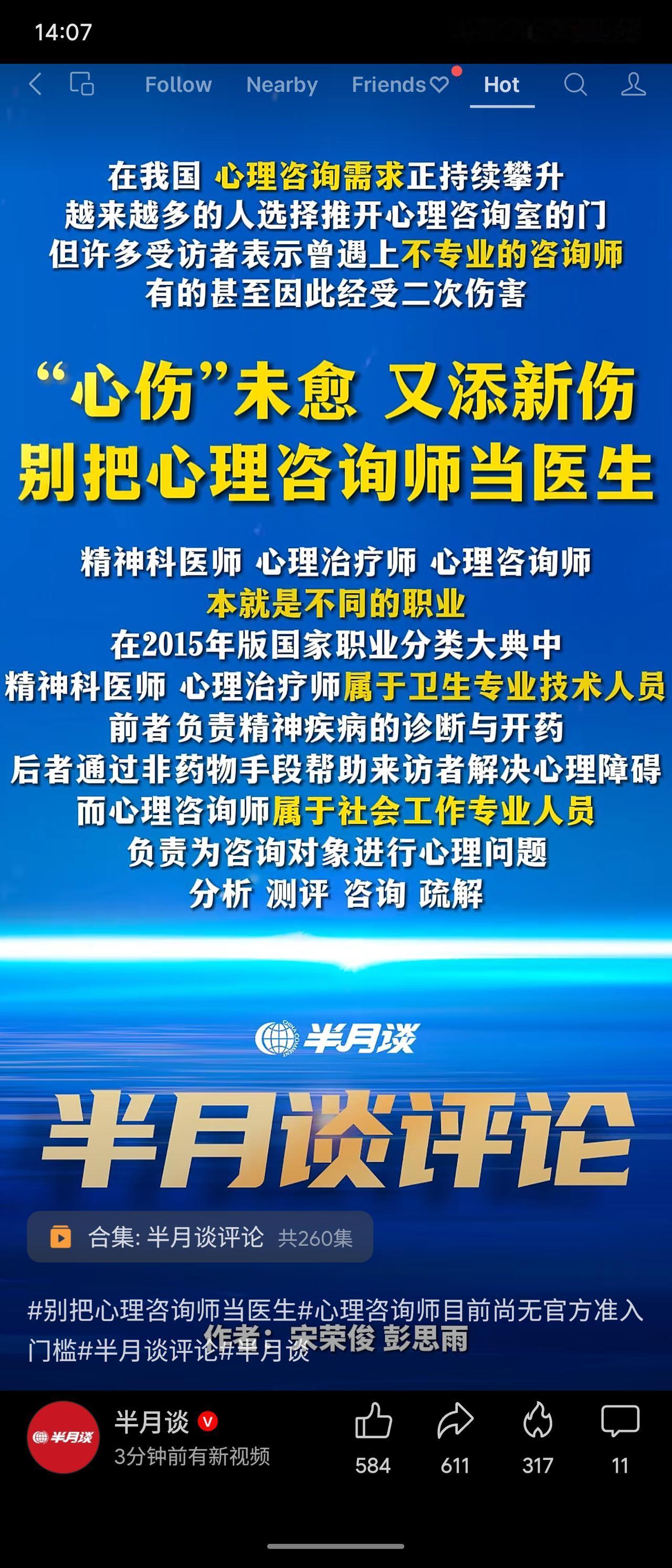 我国心理咨询需求激增,但行业乱象频发:不少咨询师不专业,甚至造成二次伤害。半月谈指出,精神科医师、心理治疗师、心理咨询师职业界限分明,后者并非医生且无官方准入门槛。国家卫健委已于2024年底设立心理健康与精神卫生处,推进医疗与校园服务。亟需建立从业标准,避免“心伤未愈又添新伤”。