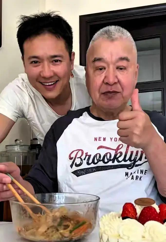 最近高云翔在社交平台上发了段给父亲过生日的视频,简单却暖心,瞬间戳中不少人。 2月10日那天,他专门去父亲家,亲手煮了一碗长寿面,加了豆芽胡萝卜丝黄豆酱,看着就家常味十足。没弄蛋糕蜡烛啥的,他直接用筷子敲碗边,吹口哨哼生日歌,调皮得像个大男孩,还开玩笑说这是父亲的“18岁生日”,让老人家大胆放飞自我。 镜头里,高云翔站在父亲身后,父子俩五官超级像,遗传太明显。父亲头发花白,坐椅子上行动不太利索,表情一开始有点严肃,但看到儿子这闹腾劲儿,嘴角还是忍不住微微上扬。家里陈设简单,墙上挂字画,柜子摆满茶叶罐,老人平时爱品茶,日子过得清静踏实。 高云翔自己呢,多年淡出圈子后,身材圆润了不少,穿T恤还有褶皱,头发也没怎么打理,但那股骨子里的俊朗还在。视频里没见其他家人,只有父子俩,显得安静又真实。他小时候父母就分开,跟母亲长大,母亲没再婚,父亲是文艺工作者。现在父子关系保持得不错,经历过人生大起大落,他更懂得珍惜这些平凡陪伴。 对比之下,前妻董璇那边带着女儿小酒窝和现任张维伊一家,最近被拍到机场出行,画面温馨,小酒窝还收粉丝礼物,状态活泼。生活各有轨迹,高云翔选择低调陪家人,父爱和孝心在这些小事里最打动人。日子平淡了,但这份踏实,才是经历风雨后最珍贵的。