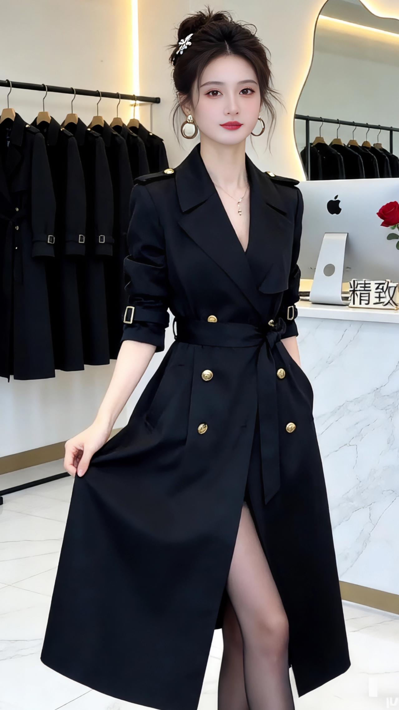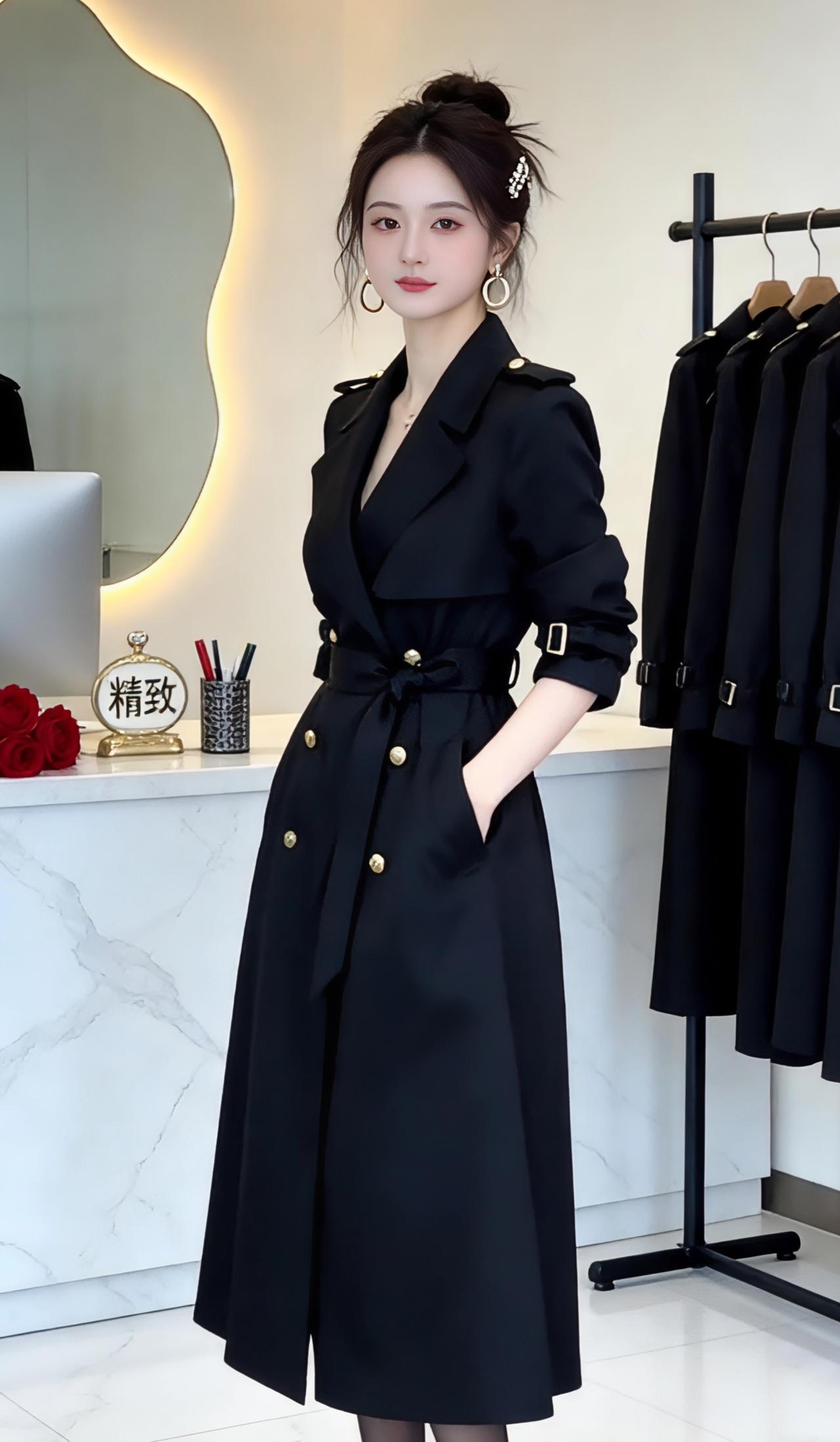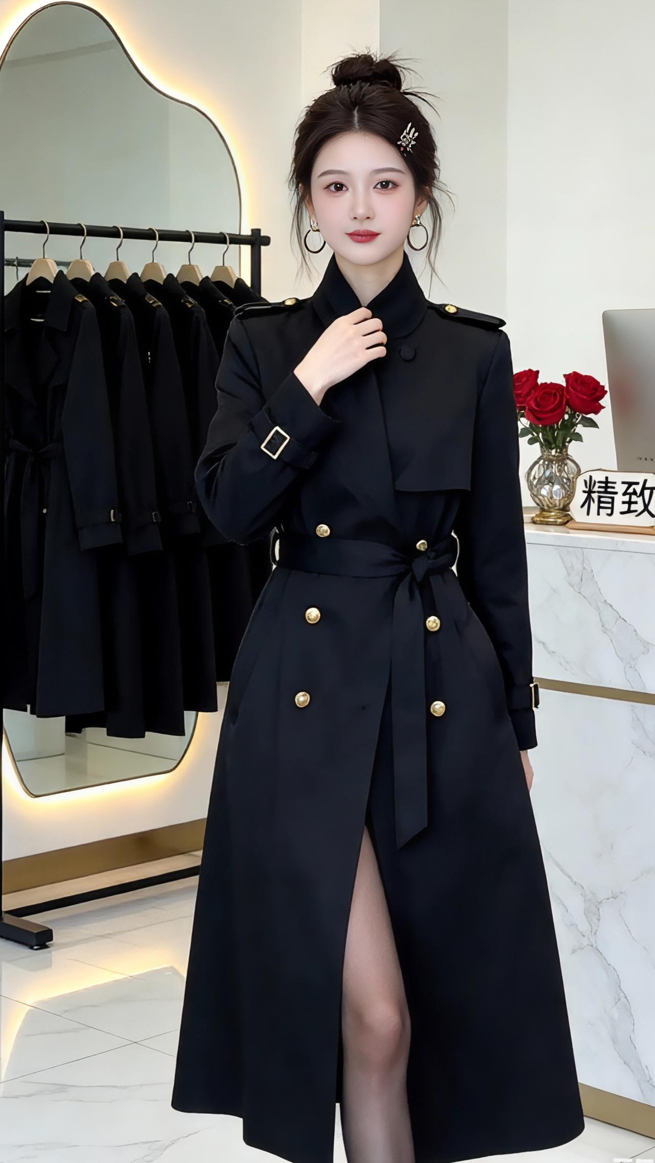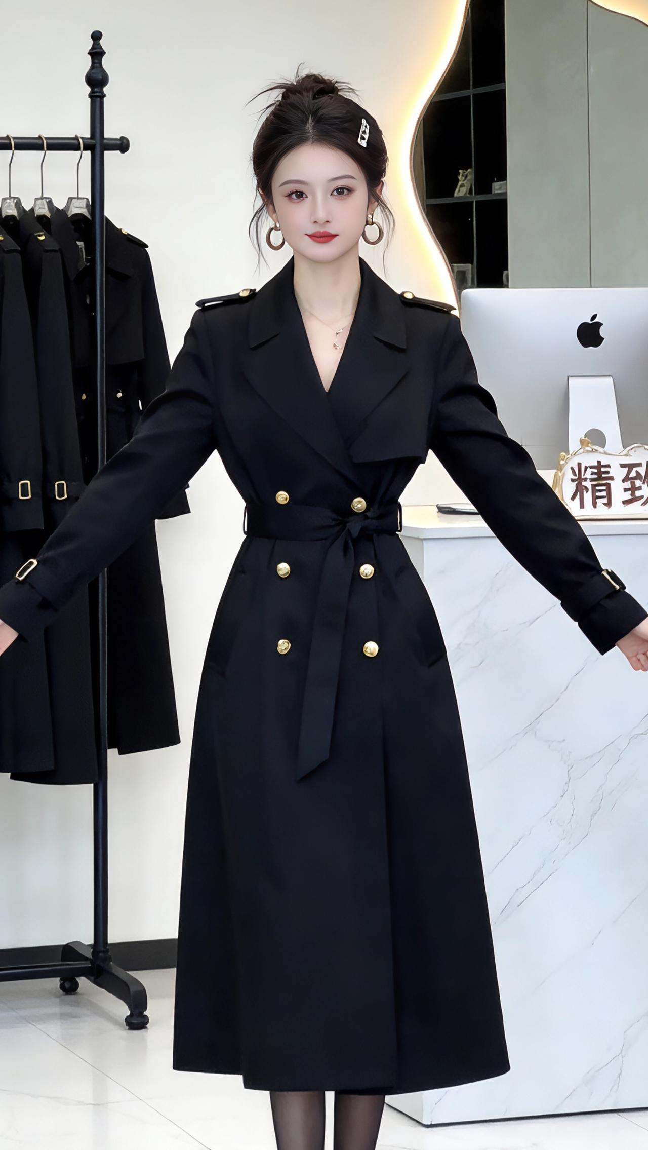 👗 黑色收腰双排扣风衣:精致与气场的融合 这款黑色风衣是兼具高级感与实用性的穿搭单品,从图片细节和市场信息来看,它的核心特点如下: ✨ 设计亮点 - 经典廓形:中长款长度(约及小腿中部),双排扣+翻领设计,复刻了英伦风衣的经典元素,同时通过收腰系带优化了身材比例。 - 细节质感:金属纽扣、肩章、袖口搭扣等五金装饰,提升了精致度;面料垂坠感强,既有挺括度又不失柔软度。 - 多场景适配:既可作为外套搭配内搭,也可直接当作连衣裙穿着,适配通勤、约会、正式场合等多种场景。 📸 穿搭表现力 从展示图中可以看到,这款风衣在不同姿态下都能展现出独特魅力: - 正面展开时,气场全开,凸显利落干练; - 侧身或手插口袋时,随性又不失优雅; - 背面开衩设计,兼顾了行走的灵动性与视觉层次感。 💡 搭配建议 - 内搭:简约黑色吊带/针织衫,或白色衬衫,打造“less is more”的高级感; - 下装:黑丝+高跟鞋,或直筒裤+乐福鞋,强化腿长比例; - 配饰:金属耳环、精致发夹,呼应风衣的五金细节,提升整体精致度。 如果你需要,我可以帮你生成一段适配这款风衣的营销文案,突出它的“精致感”和“气场感”,用于社交媒体或店铺宣传,需要吗?高级感穿搭新年穿搭 风衣外套中长款