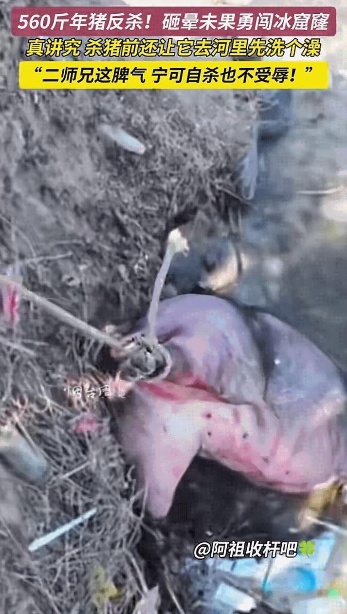 “万万没想到!”2月10日,山东烟台,一男子家杀年猪,不料,因猪太重,4个人按不住,男子就想着拿东西先把猪给敲晕在杀,不曾想猪没被敲晕还因此受惊逃跑了,由于男子家离水库比较近,猪不知道往哪里跑就一头扎进了水库的冰窟窿里。 2月10日,山东烟台的一则视频刷爆全网,本来是一件热热闹闹的杀年猪喜事,最后却闹得又好笑又让人惋惜,看过的网友都直呼“万万没想到”,好好一头年猪,竟落得这般下场。 当天,山东烟台气温依旧很低,农村里到处都透着年的气息,杀年猪更是当地冬天里的一件大事,既是筹备年货的重要环节,也是一家人团圆喜庆的象征,不少人家都会趁着年前,把养了一年的肥猪杀掉,留着过年吃鲜肉、腌腊肉。 烟台这名男子家也不例外,他家里养了一头肥猪,养了整整一年,长得膘肥体壮,称重下来足有560斤,一家人盘算着,趁着2月10日这天天气尚可,喊上邻里帮忙,把这头猪杀掉,热热闹闹备点年货。 按照当地杀年猪的习惯,男子提前喊来了3个邻居,加上自己一共4个人,本以为4个成年人,对付一头猪绰绰有余,可真到动手的时候,才发现低估了这头肥猪的力气。 几人事先准备好了绳子,想着先把猪捆住按住,再进行宰杀,可刚靠近猪,这头肥猪就察觉到了危险,拼命挣扎起来。 4个人赶紧上前合力按压,有人按头、有人按身子、有人按住四肢,可这头猪力气实在太大,浑身的肥肉底下全是劲,挣扎起来劲头十足,4个人使出了浑身力气,脸憋得通红,也没能把它稳稳按住,反而被猪挣扎得东倒西歪,好几次差点被猪挣脱。 折腾了十几分钟,4个人都累得气喘吁吁,胳膊腿都有些发酸,可依旧没能按住这头肥猪,猪的挣扎反而越来越剧烈,眼看再这样下去,几个人都要按不住了,男子心里也急了,生怕猪挣脱后乱跑,伤到在场的人。 情急之下,男子想到了一个办法,他转身从院子里拿起一根粗木棍,想着先把猪敲晕,等猪失去力气,再进行宰杀,这样既能省力,也能避免意外发生。他小心翼翼绕到猪的侧面,找准机会,举起木棍就朝着猪的头部敲了过去。 可让人没想到的是,这一敲不仅没能把猪敲晕,反而彻底激怒了这头肥猪,也激发了它的求生本能。 猪被敲中后,疼痛感让它变得更加狂躁,挣扎得比之前还要厉害,趁着4个人愣神的瞬间,猛地挣脱了几个人的束缚,一头撞开旁边的围栏,疯狂地朝着门外跑去。 男子和邻居们都懵了,反应过来后,赶紧追了出去,一边追一边喊,可这头受惊的猪跑得飞快,一心只想逃离,根本不管身后的追赶声。 更让人无奈的是,男子家离村里的水库很近,直线距离也就几十米,这头猪慌不择路,根本分不清方向,一头就朝着水库的方向冲了过去。 当时水库的水面早已结冰,厚厚的冰层覆盖着整个水面,远远看上去平整光滑,可冰层下方暗藏隐患,尤其是靠近岸边的地方,因为气温波动,冰层厚度不均匀,还有不少隐蔽的冰窟窿,平日里村里人都特意提醒孩子,不要靠近水库冰面,生怕发生危险。 这头受惊的猪根本顾不上这些,一头冲到水库冰面上,刚跑了两步,就脚下一滑,正好踩在了一处隐蔽的冰窟窿上,只听“咔嚓”一声,冰层裂开一个大口子, 猪来不及反应,就一头扎进了冰冷的冰窟窿里,瞬间就被冰水淹没,只留下头顶的一小部分,在水面上挣扎了几下,就没了动静。 男子和邻居们追到水库边时,看到的就是这样一幕,几人都慌了神,赶紧找来了长竹竿、绳子,试图把猪从冰窟窿里拉上来, 可冰面湿滑,冰窟窿周围的冰层很薄,几人不敢轻易靠近,只能小心翼翼地试探,折腾了半个多小时,也没能把猪拉上来。 后来,他们又找来更多工具,慢慢凿开冰面,费了九牛二虎之力,才把这头猪从冰窟窿里捞了上来,可此时,猪已经没有了呼吸,彻底溺亡了。 看着这头浑身湿透、早已没了气息的肥猪,男子心里满是无奈和惋惜,养了一年的心血,就这样付诸东流。 要知道,这头猪是男子一家人精心饲养的,平日里喂的都是粮食和青菜,耗费了不少心血和精力,本来想着杀了过年吃,没想到因为一时情急,操作不当,最后落得这样的下场。 而且按照常识,溺水而亡的猪,血液会淤积在肌肉和内脏中,肉质会变得发红发暗,还会带有浓重的腥臊味,根本没法食用。 当天,有人把这件事的全过程拍了下来,发到了网上,很快就引发了网友的关注,大家看后,有的觉得好笑,调侃这头猪“求生欲拉满”,有的则替男子惋惜,毕竟养了一年的肥猪,就这样浪费了。 杀年猪本是一件喜庆的年俗小事,却因为一时疏忽,变成了一件让人惋惜的事。对此,你们有什么看法,欢迎评论留言~