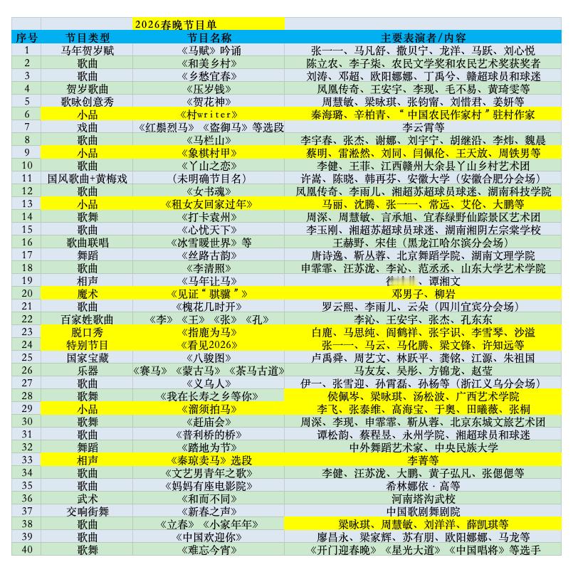 2026春晚节目单