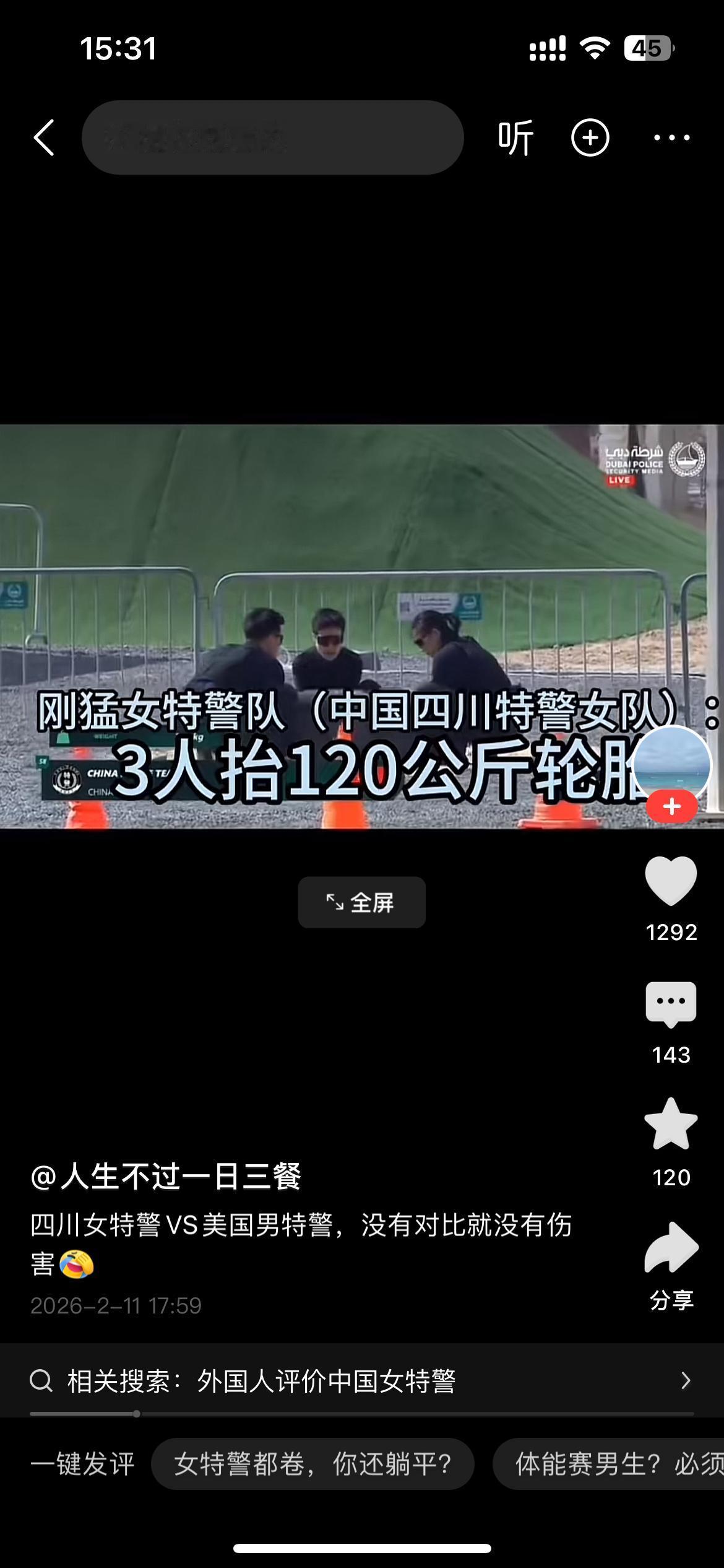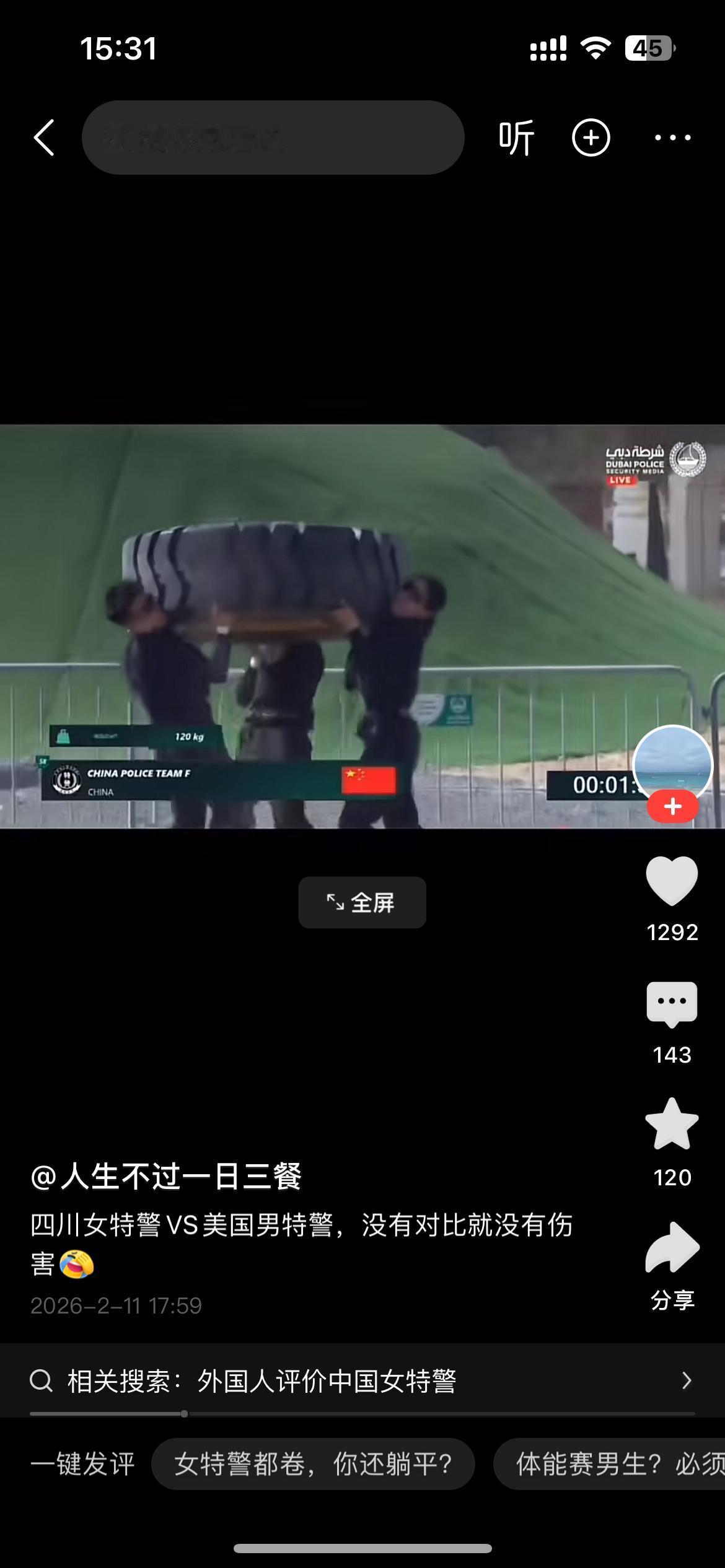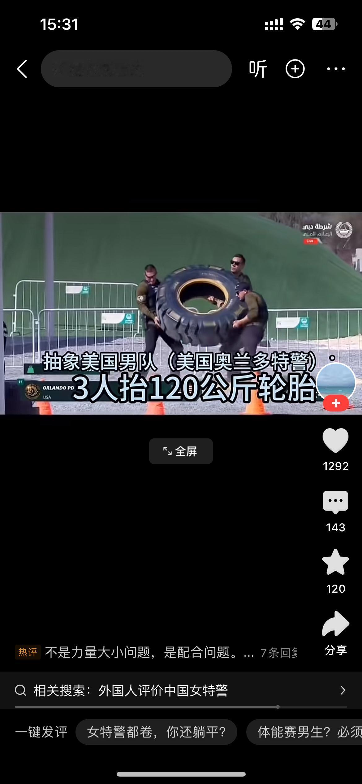 美国奥兰多特警队三位猛男壮汉这次“丢人丢的有点大”!三个美国男特警,五大三粗的老爷们竟然没有抬起这个120公斤的大轮胎,真是有点出乎意料,估计有人在抬轮胎时“耍了滑头”。 倒是中国四川特警女队三位女警直接“完爆”美国三位男特警,直接抬起这个120公斤大轮胎感觉很轻松地就到终点!