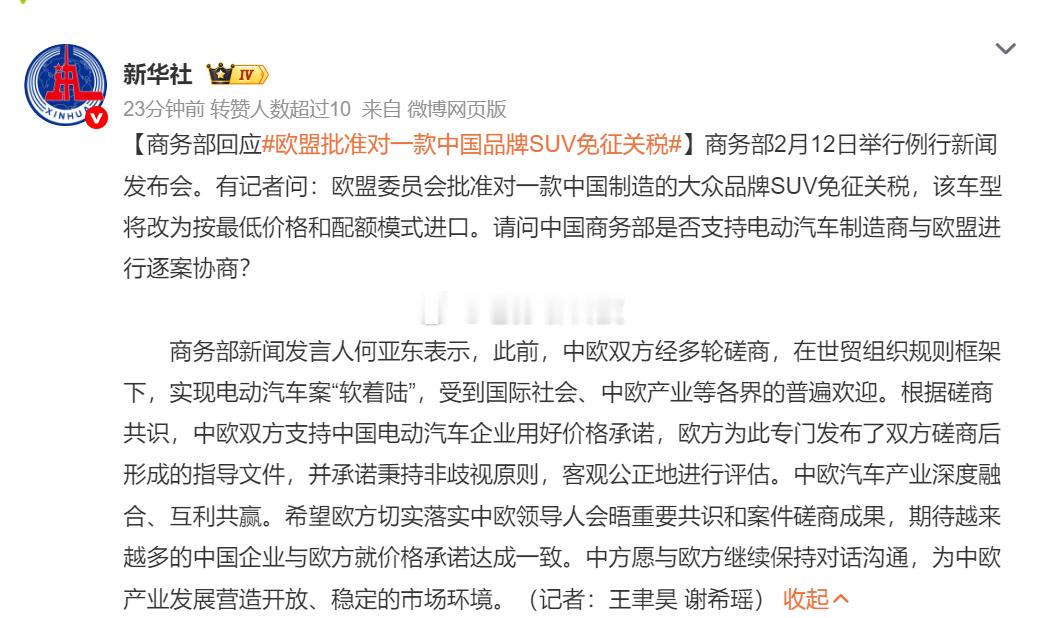 欧盟批准对一款中国品牌SUV免征关税教员老人家的智慧,什么时候都可以用