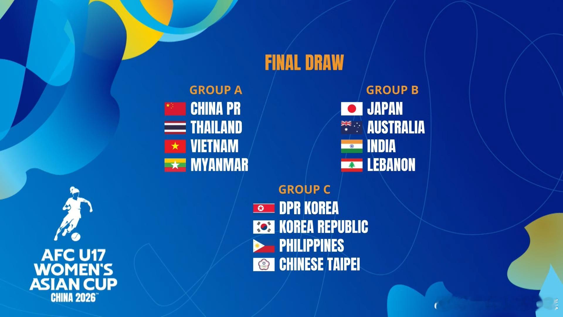 U17女足亚洲杯 2026年在中国举办的亚足联AFC U-17女足亚洲杯抽签分组确定✅
