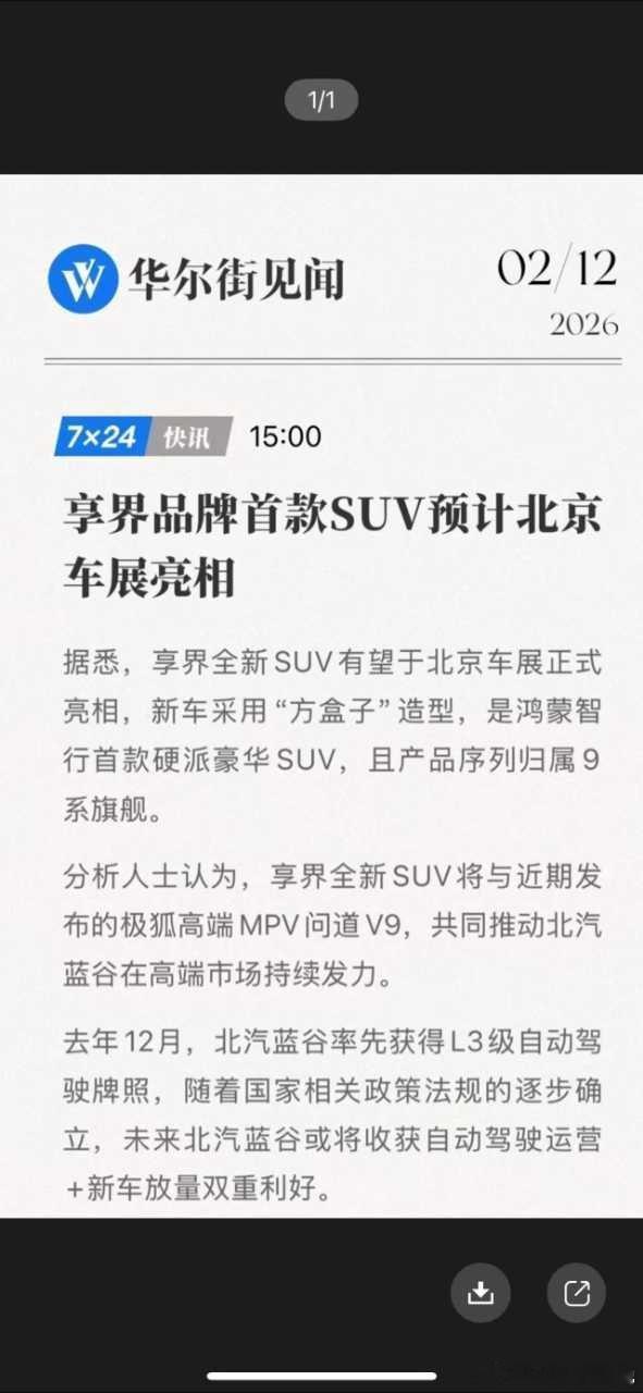 最近也有关于享界的新车的消息,刚刚看到的享界的方盒子车型预计北京车展能看到,而且归属鸿蒙智行9系旗舰的产品序列