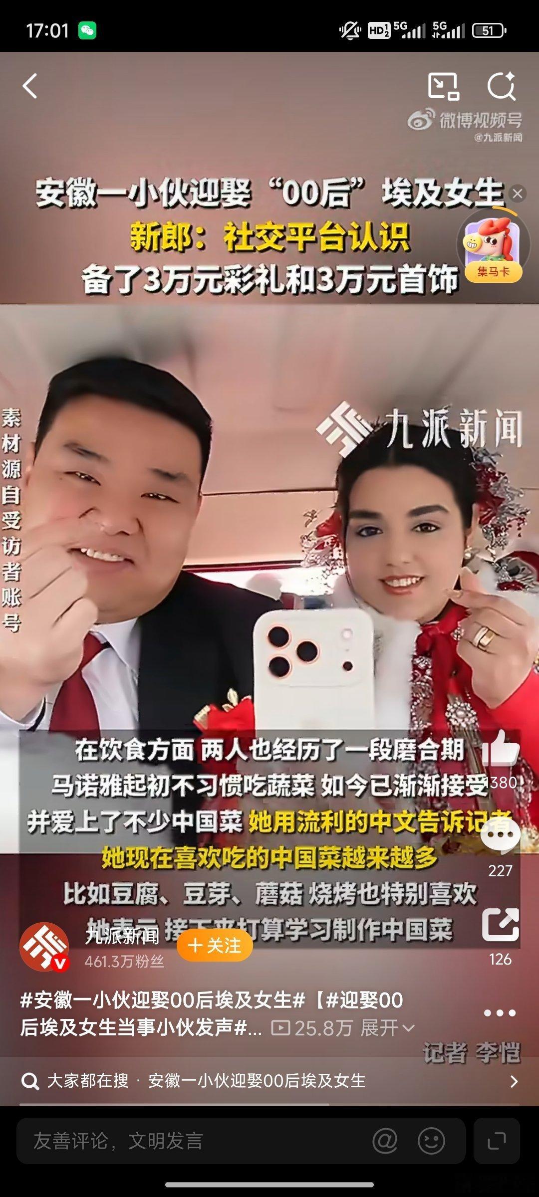 迎娶00后埃及女生当事小伙发声跨国婚姻从来不止是浪漫,更是两种文化、两种生活习惯的碰撞与磨合。小伙主动发声、坦诚沟通,既尊重对方的习俗,也守住自己的诚意,这份清醒和担当,比一时的热度更难得。远嫁本就需要勇气,能被认真对待、被放在心上,才是感情最扎实的底气。爱情可以跨越国界与年龄,但长久的婚姻,靠的永远是互相理解、彼此尊重和实实在在的责任感。祝福这段缘分,也愿每一份真心都不被辜负,每一段选择都能被温柔以待。