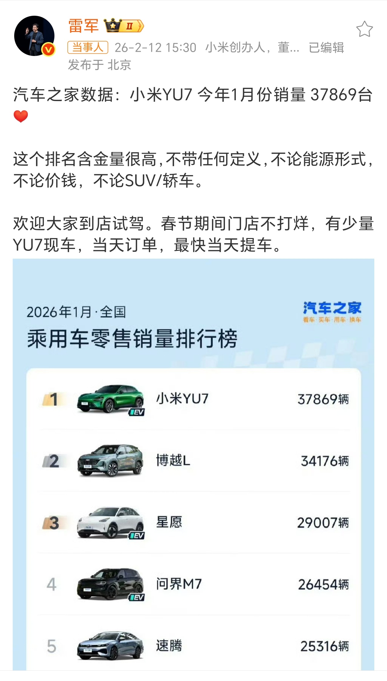雷军回来小米YU71月份销量论颜值的重要性,不论是车还是人还是其他……