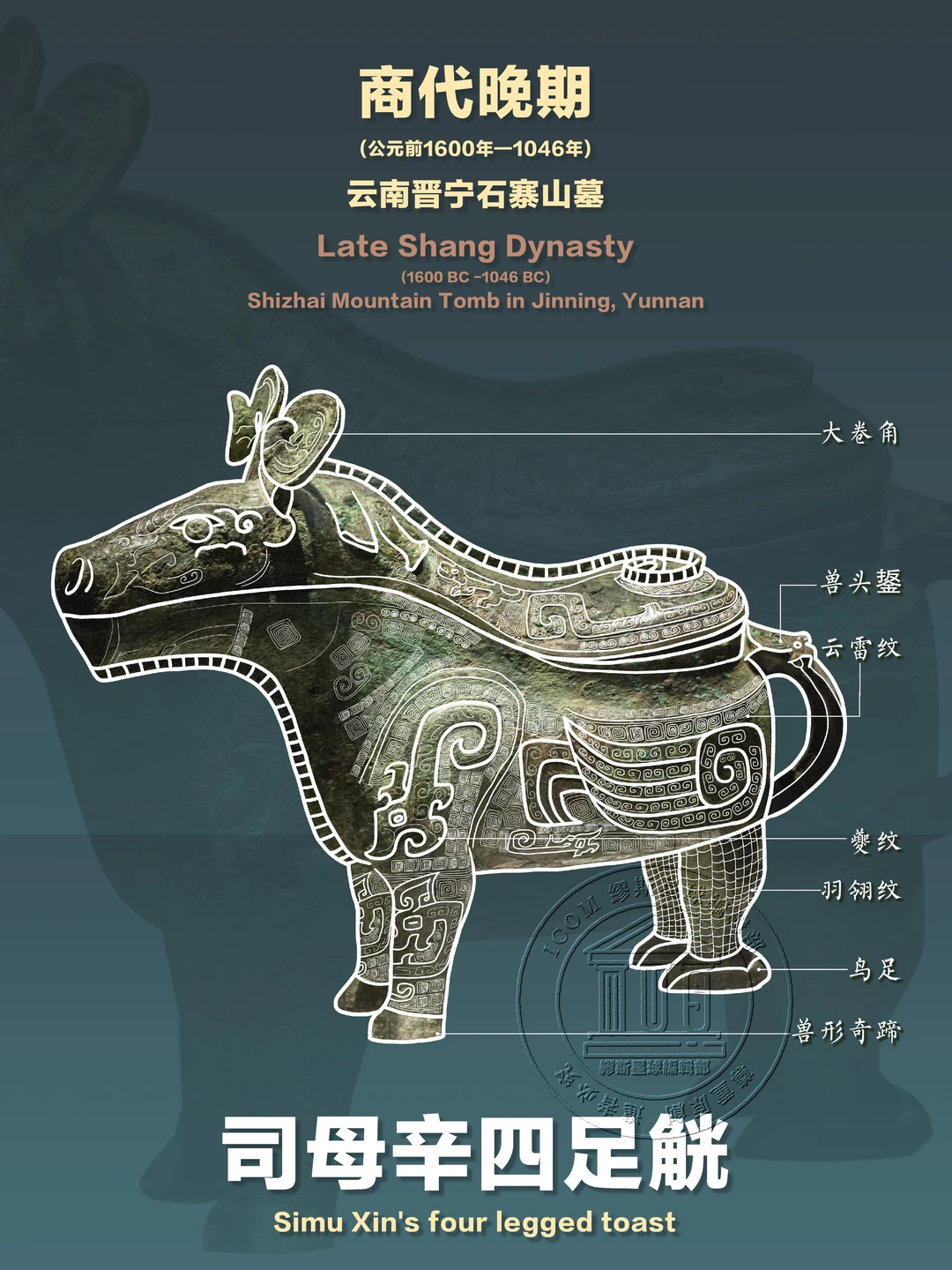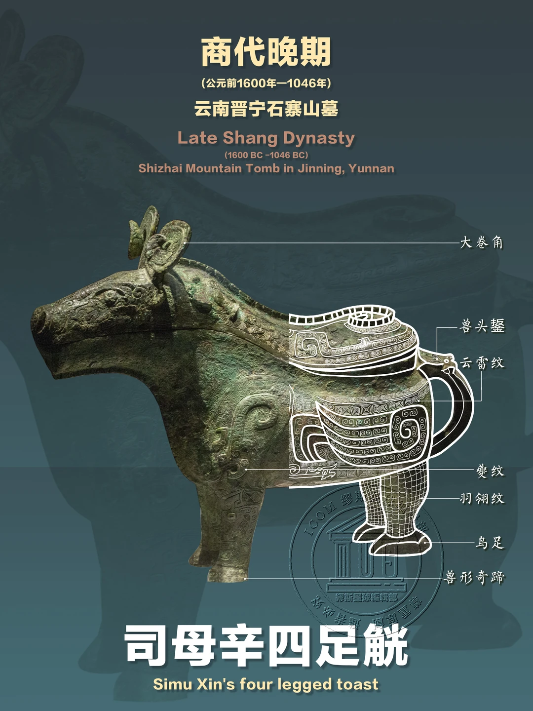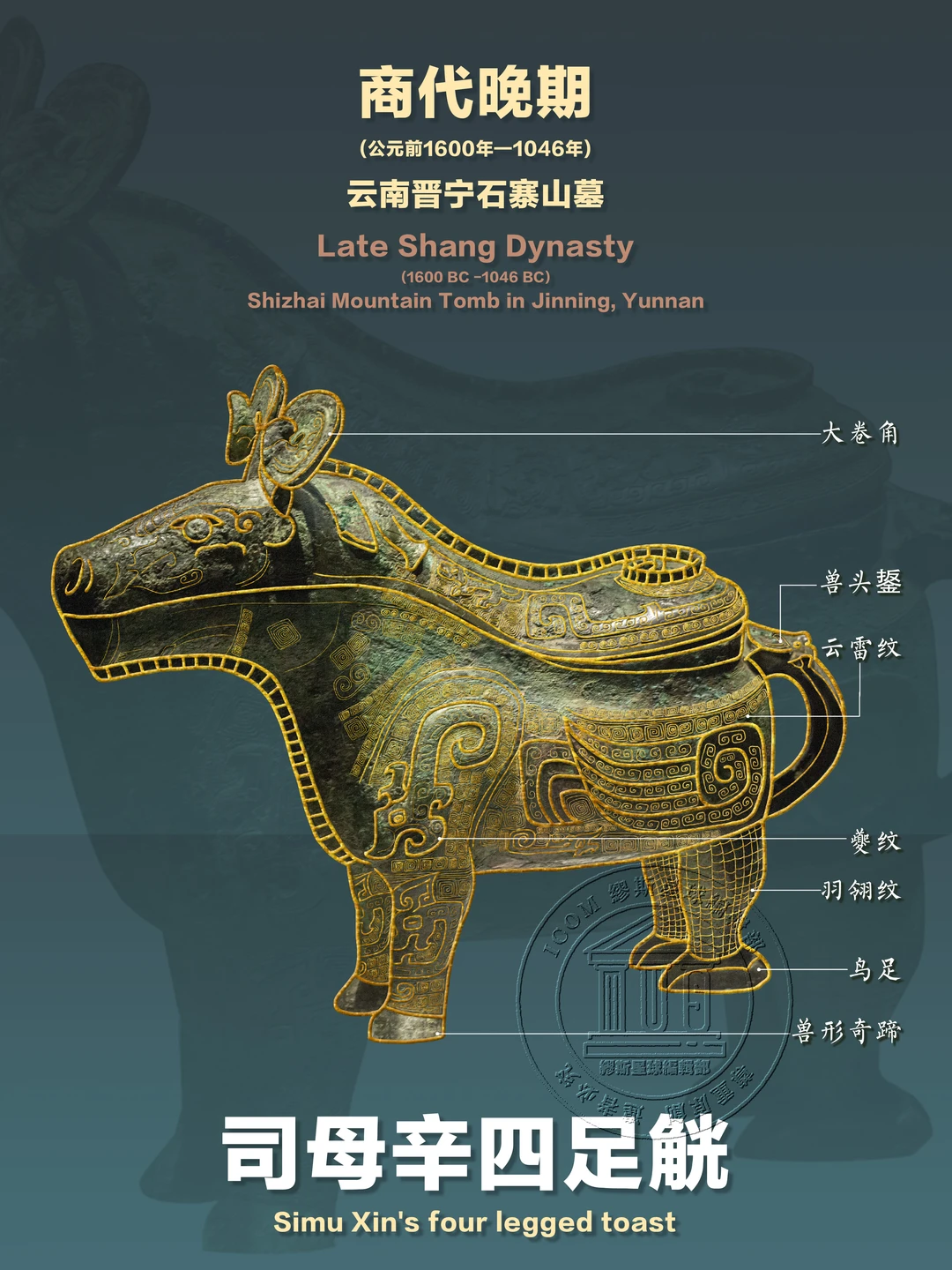 🖋️ “司母辛”四足觥是商代晚期宫廷盛酒器具器。1976年,安阳殷墟妇好墓出土,出土为两件,现分别收藏于中国社会科学院考古研究所、河南博物院。