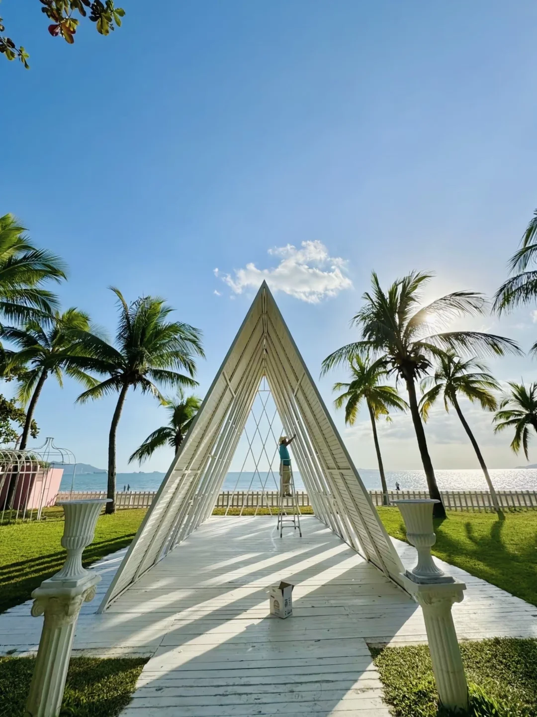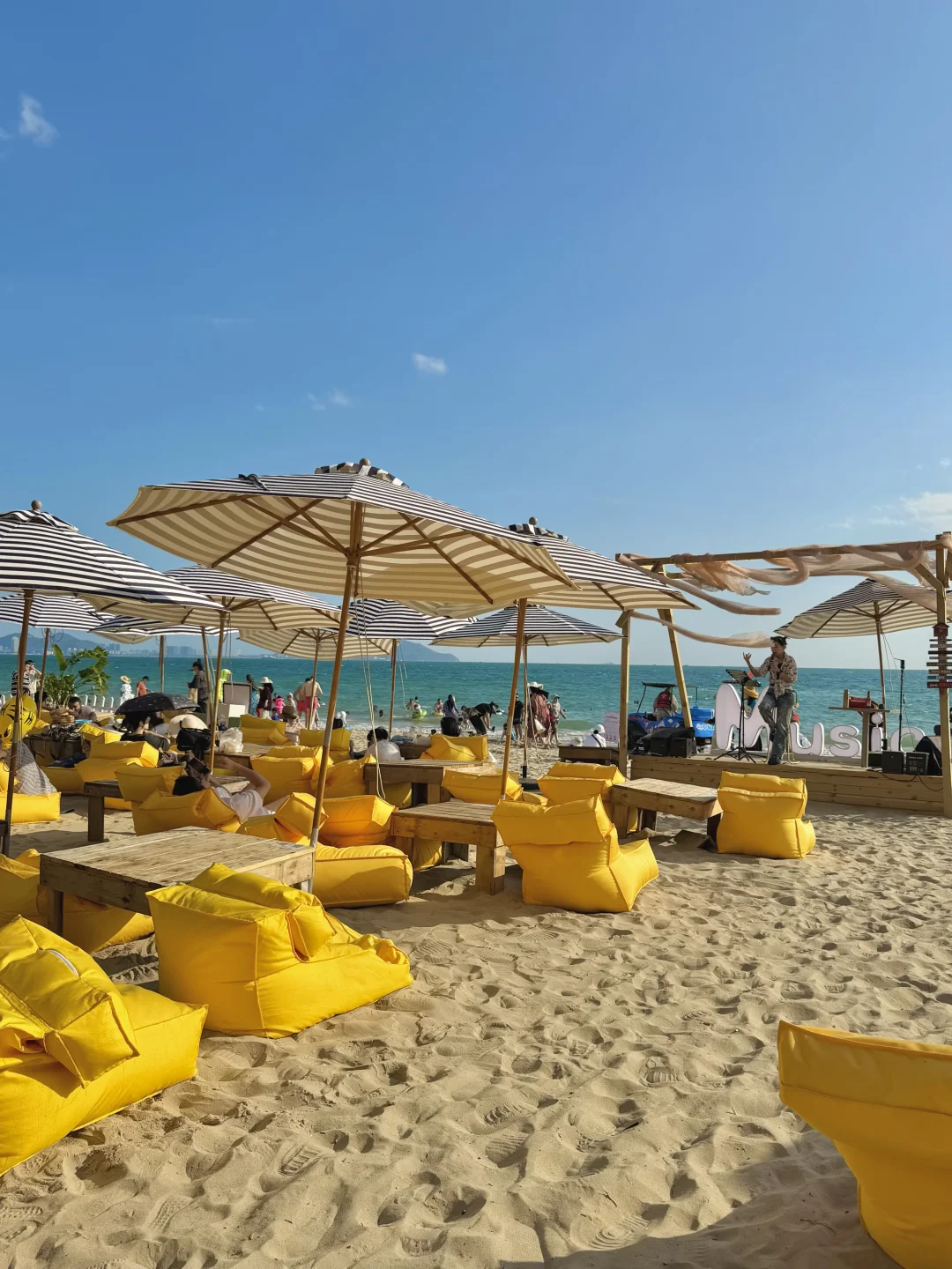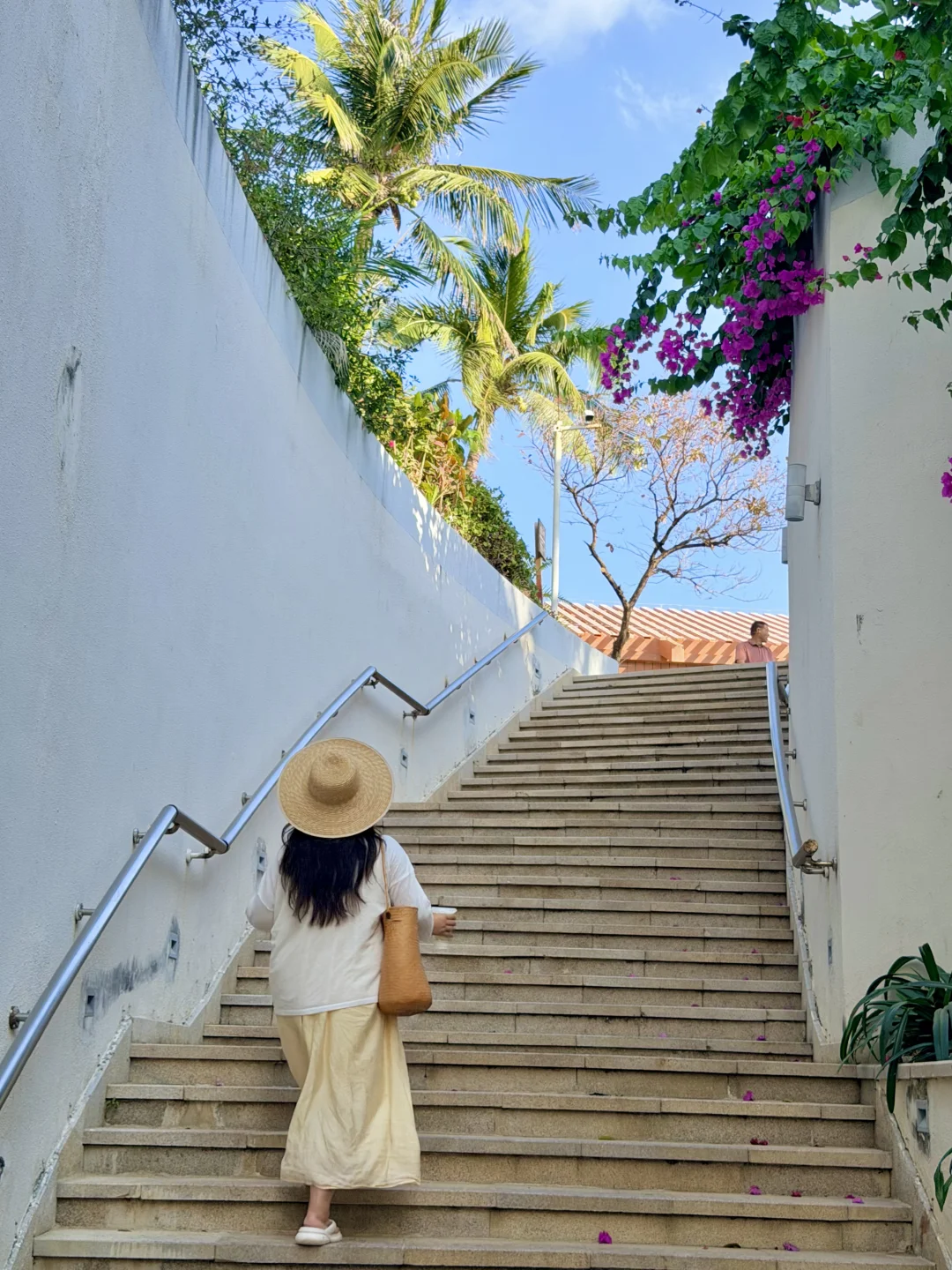 酒店的大草坪是免费的,超级大,而且非常美!酒店到沙滩的通道的三角梅也很出片!沙滩这边的咖啡店可以免费拍照,布景很好看,像在万宁的感觉