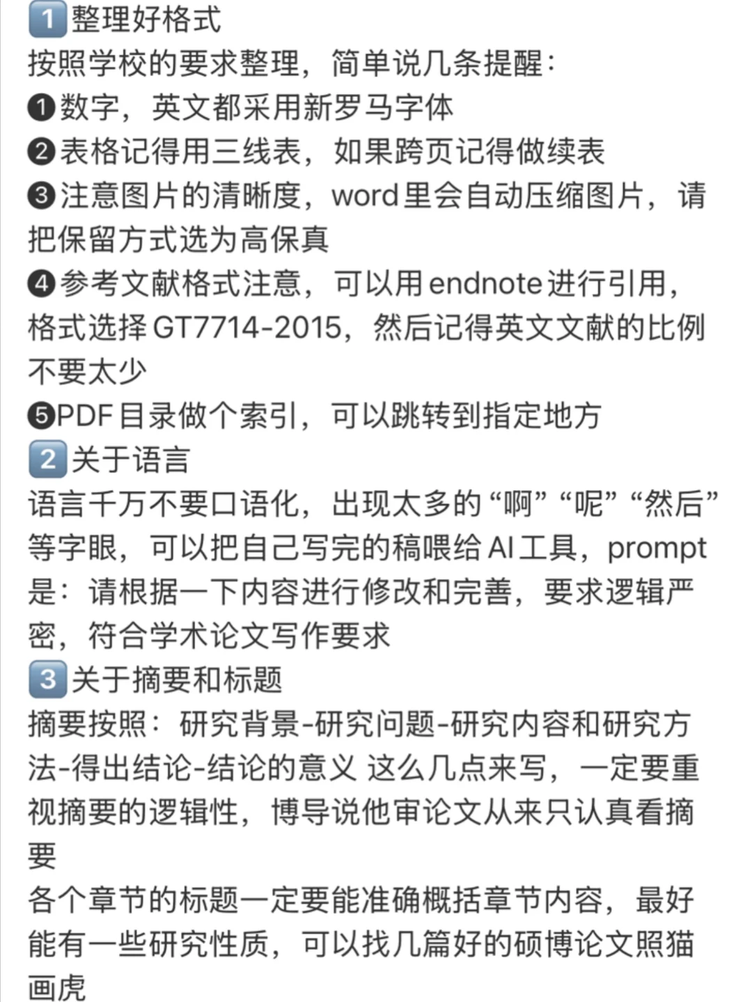 语言千万不要口语化,出现太多的“啊”“呢”“然后”等字眼,可以把自己写完的稿喂给AI工具,prompt是:请根据一下内容进行修改和完善,要求逻辑严密,符合学术论文写作要求