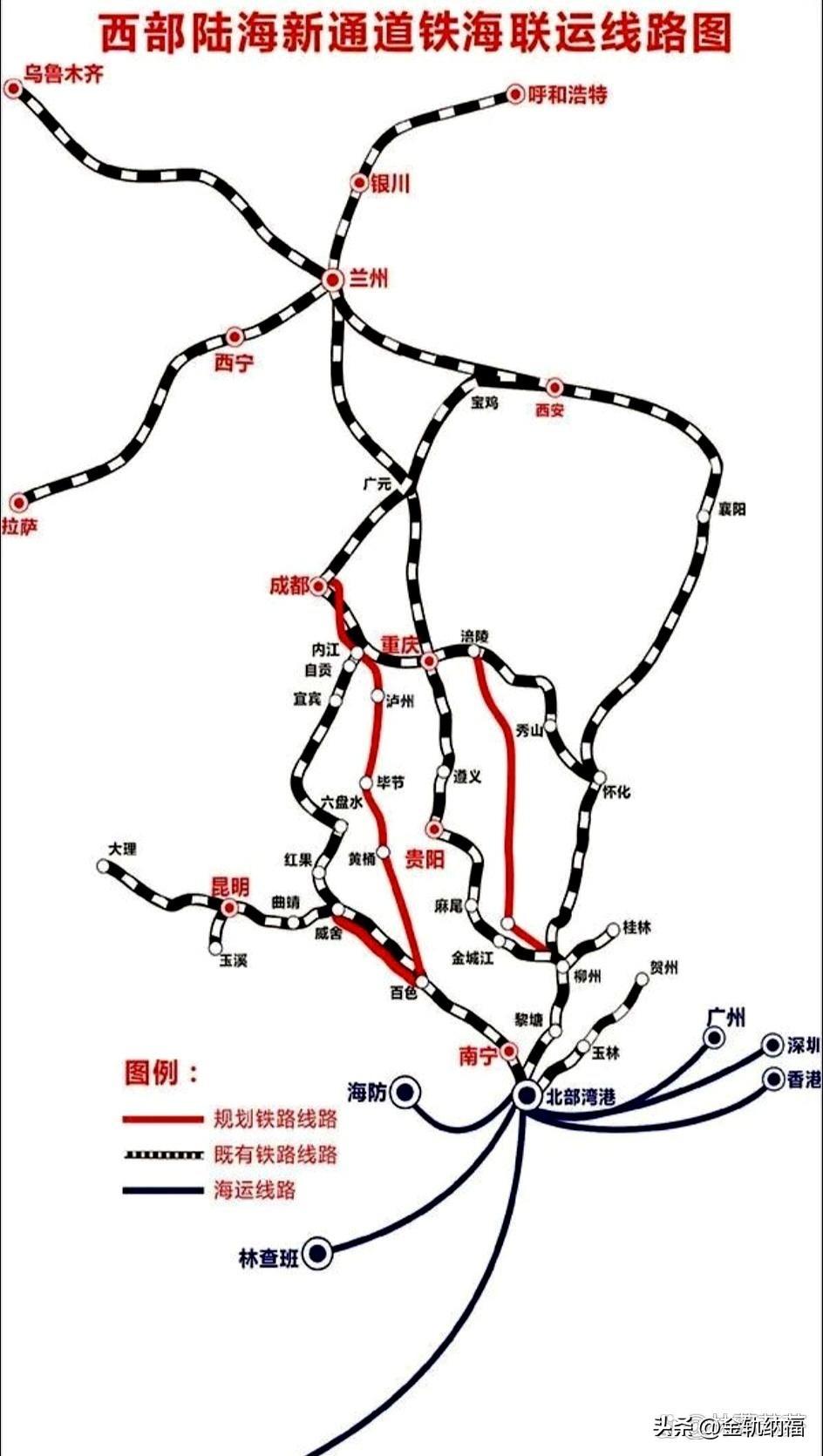 看这两张图,你就能清楚地了解“西部陆海新通道”有多重要。 现在,西部地区已经建好或正在建多条专门运货的铁路,可以直接通到广西南宁的北部湾港。 广西还投资了700多亿元挖了一条“平陆运河”,这是新中国成立以来最大的一条运河,预计今年底就能用上。 有了它,广西的南宁、柳州、百色等地,就能跑2000到5000吨的集装箱货船了,这就像把广西的海岸线直接往内陆推进了几百公里。 这样一来,像成都、重庆这些西部地方的货物要运出海,就不用再绕远路走长江到上海,或者走西江到广州了,能省下十几天的时间呢。