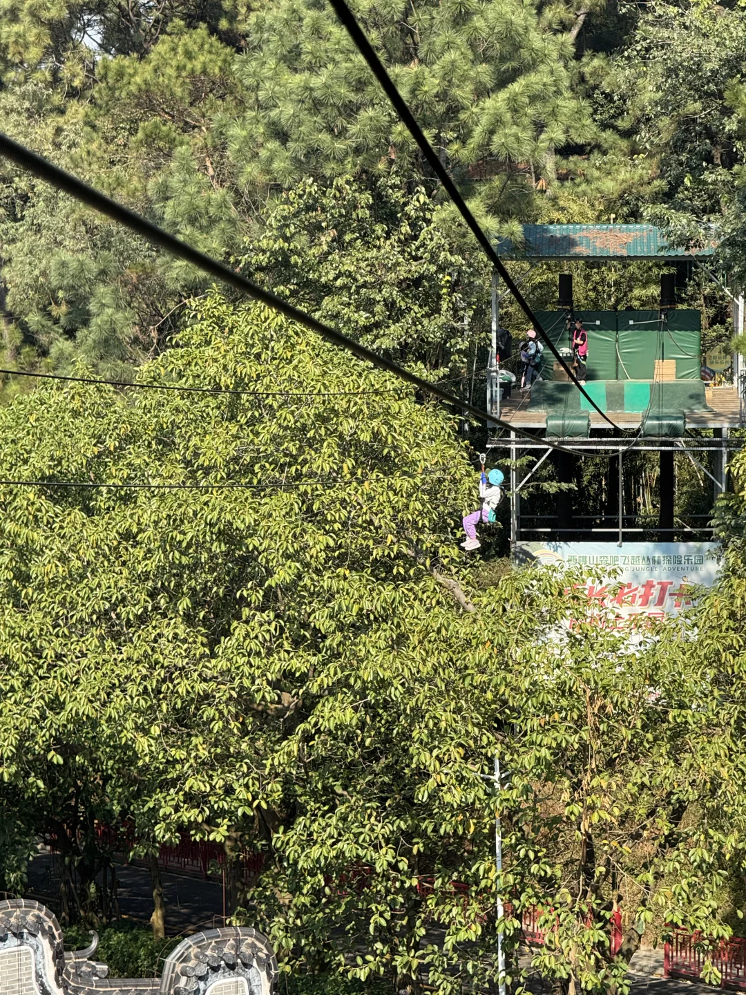 三段近400米高空滑索,14个趣味关卡