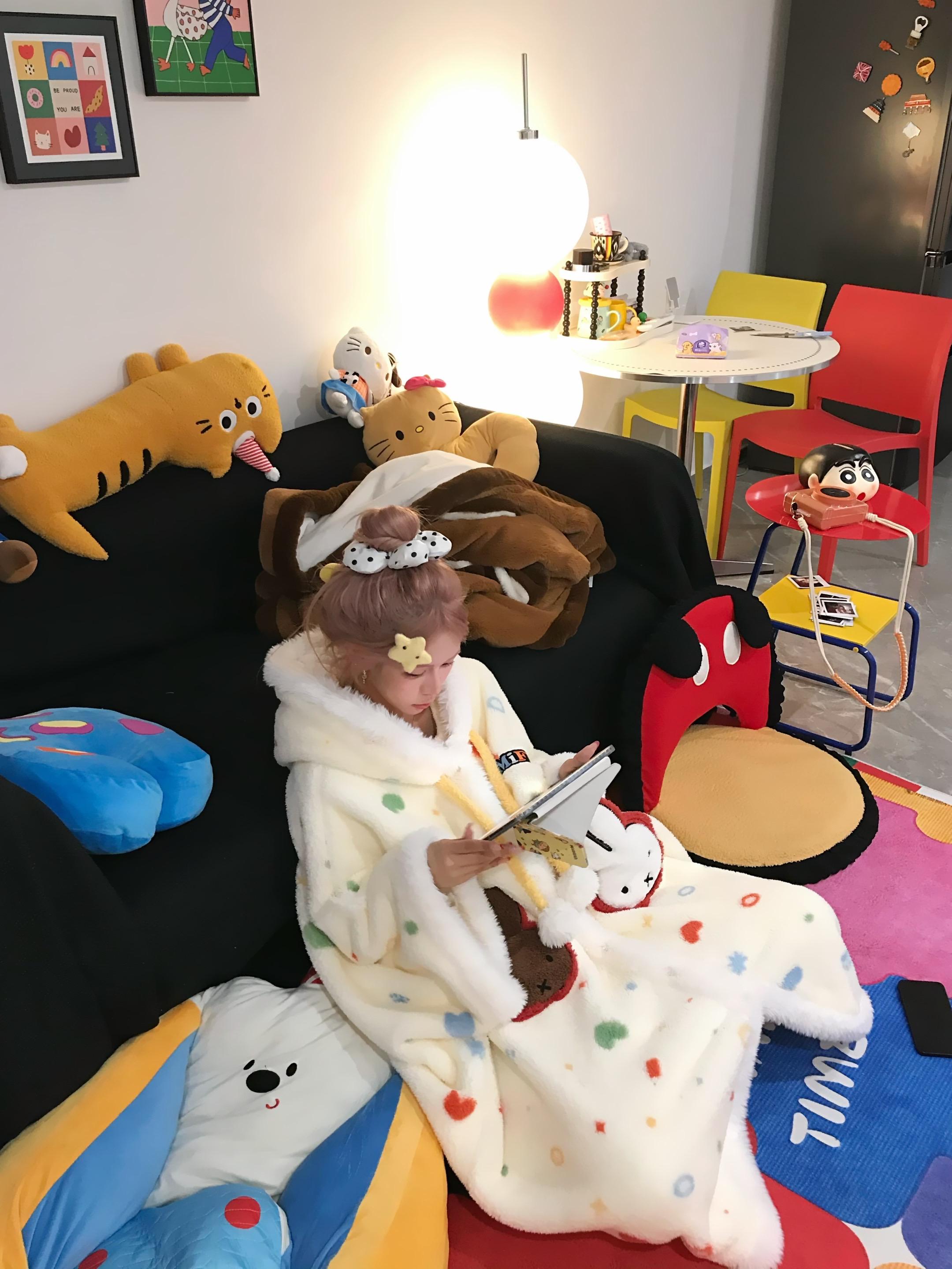 一定要吃好睡好 用生命的长度去稀释错误的浓度 直到它变得微不足道宫蝶睡衣宫蝶米菲斗篷睡袍