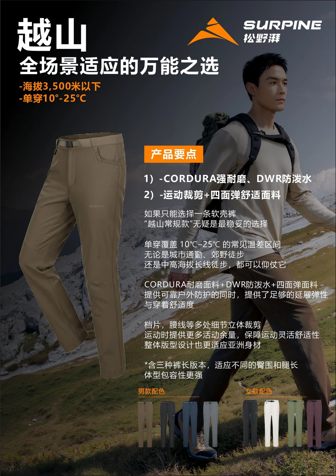 越山系列并不是重新定义软壳裤,而是通过一套完整的裤装矩阵,让城市与户外之间的切换,变得不再需要反复权衡