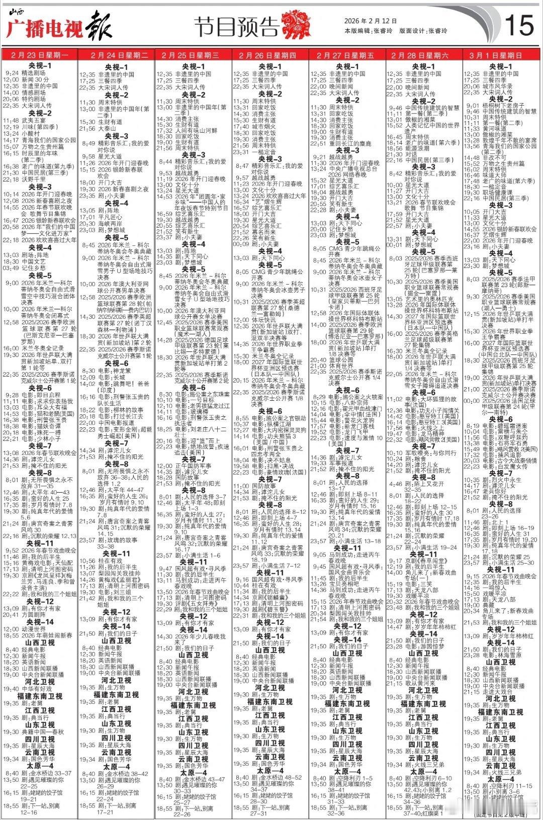 电视报来啦!2月16日至3月1日两周黄金档电视剧编排!《岁月有情时》2月20日起央八傍晚档17:30两集连播!