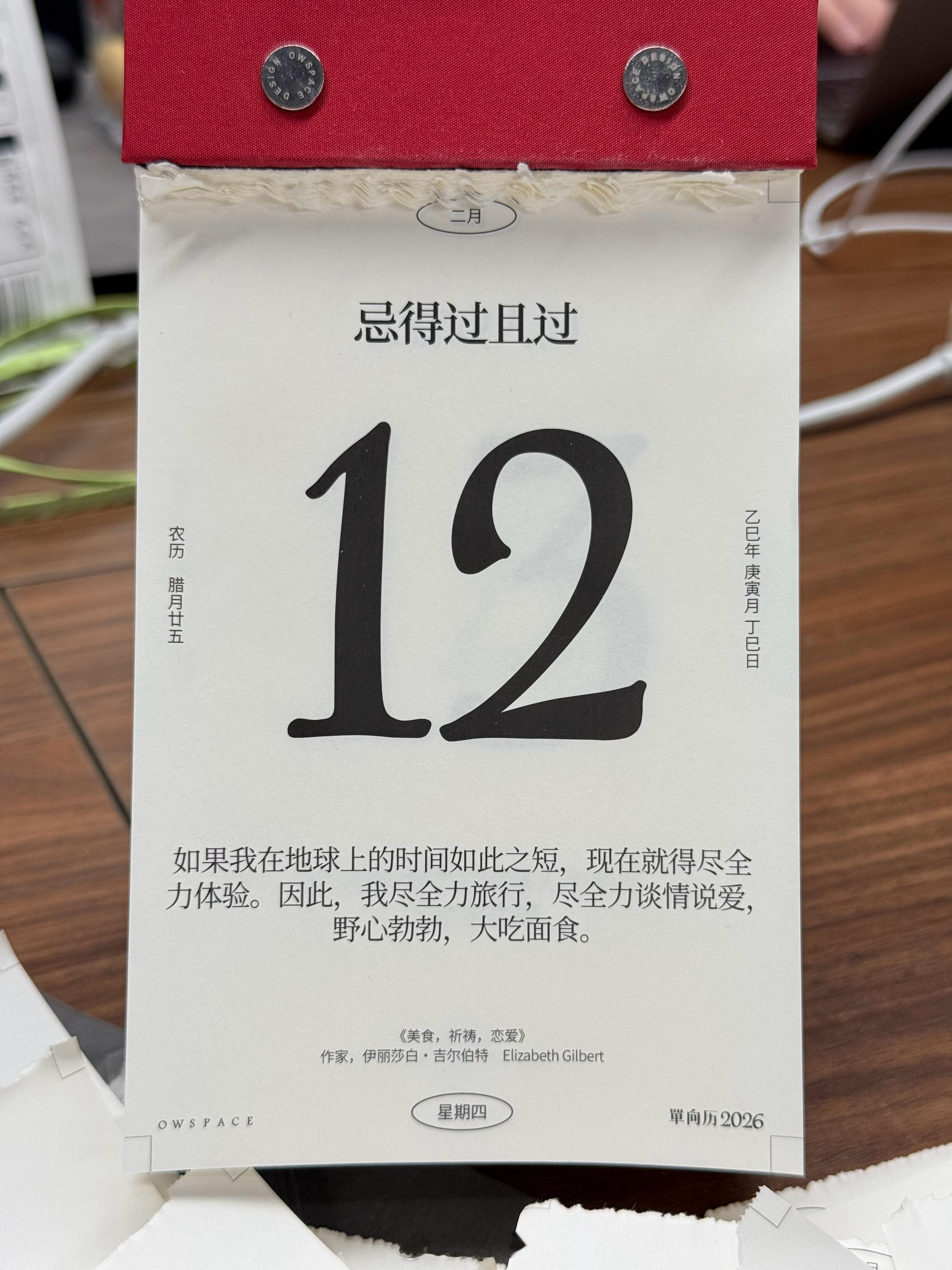 拆了一个新日历哐哐撕了半天,才意识到今年已经快过去俩月了过年回来就过完四分之一了,匆匆啊…