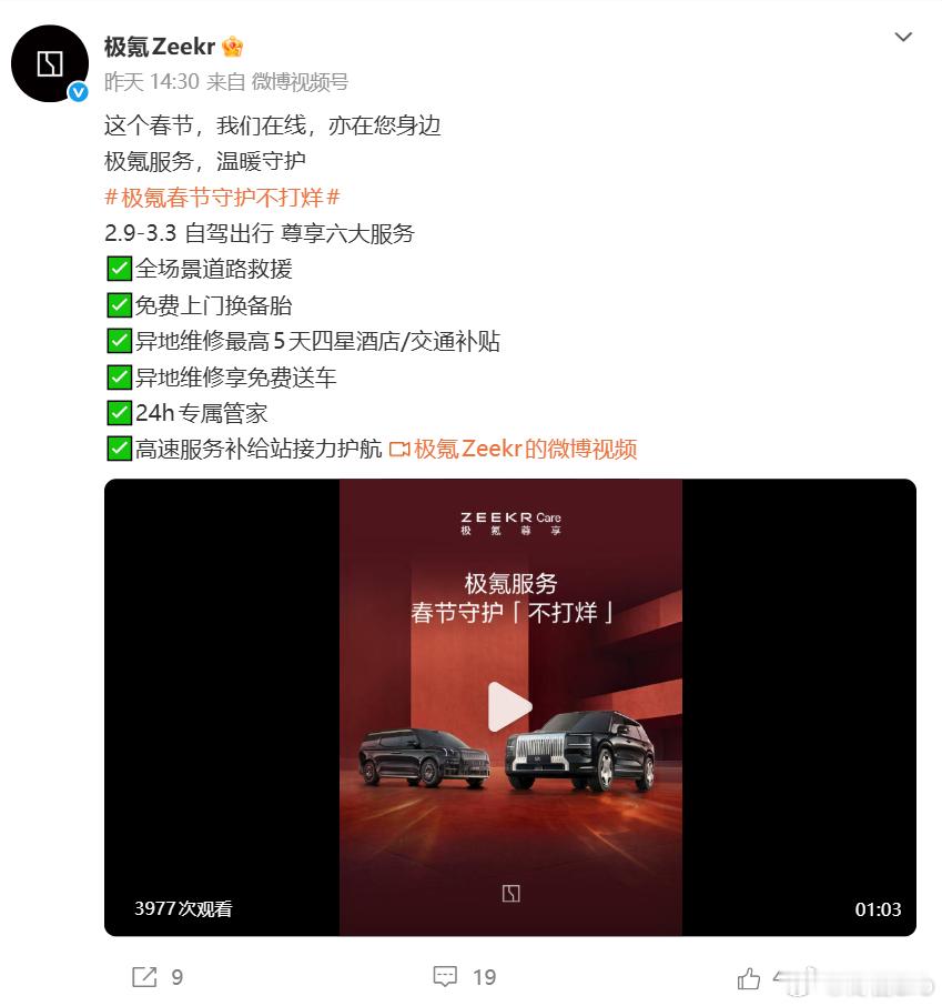 今天应该大多数人都开始返程了,有需要的朋友们可以看一下这个,我整理了几个新能源车企的春节服务:包括极氪,小鹏,零跑,鸿蒙智行,蔚来/乐道,小米,车主朋友们可以省流看一下: