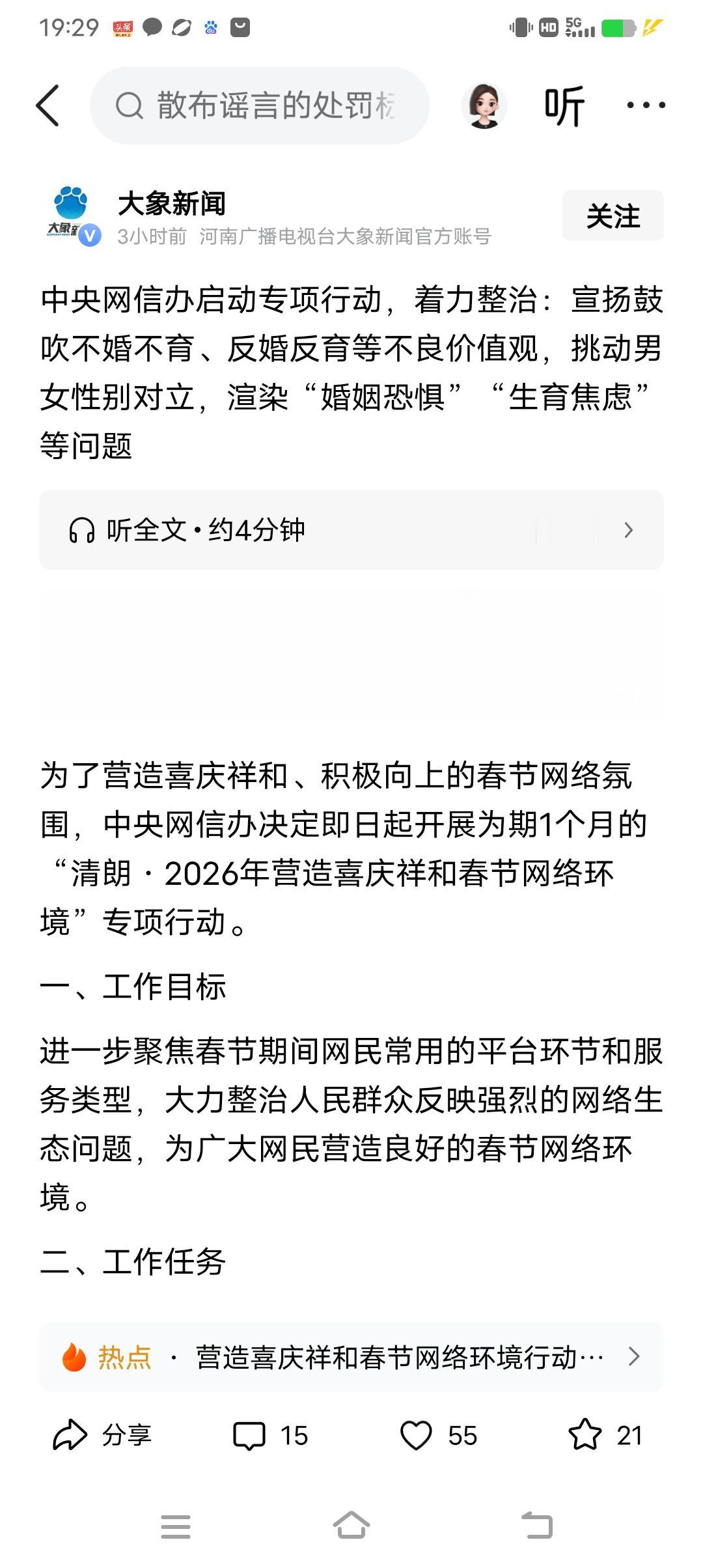 这个要严厉打击!中央网信办启动专项行动,着力整治:宣扬鼓吹不婚不育、反婚反育等不良价值观,挑动男女性别对立,渲染“婚姻恐惧”“生育焦虑”等问题。生不生孩子,要根据个人意愿,不能为了生孩子而生孩子,也不能刻意引导年轻人不生孩子,想生就生,不想生就不生,顺其自然最好。欢迎大家留言文明交流!