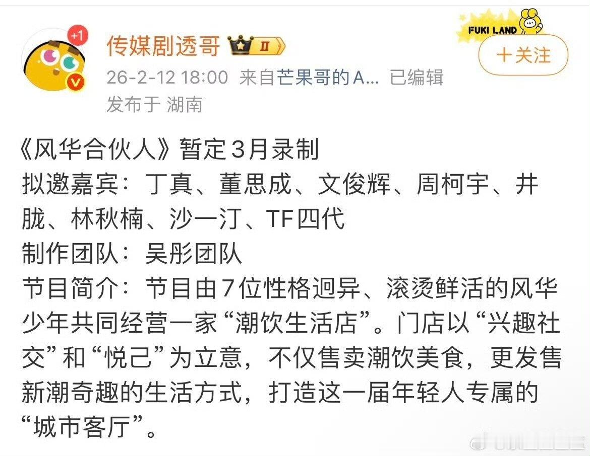 网传TF四代录制风华合伙人tf四代风华合伙人 网传TF四代录制风华合伙人