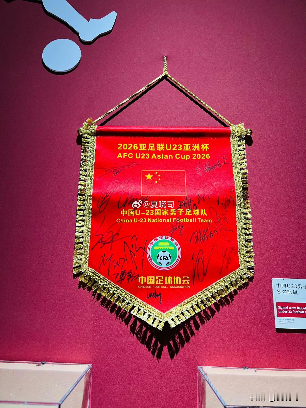 冬奥会期间,于米兰的中国之家,也有足球元素,而且是之前表现出色的中国U23男足,这次“中国之家”展出内容里有U23国足守门员李昊的签名手套,还有咱们山东泰山队彭啸的签名足球鞋。 U23足球队