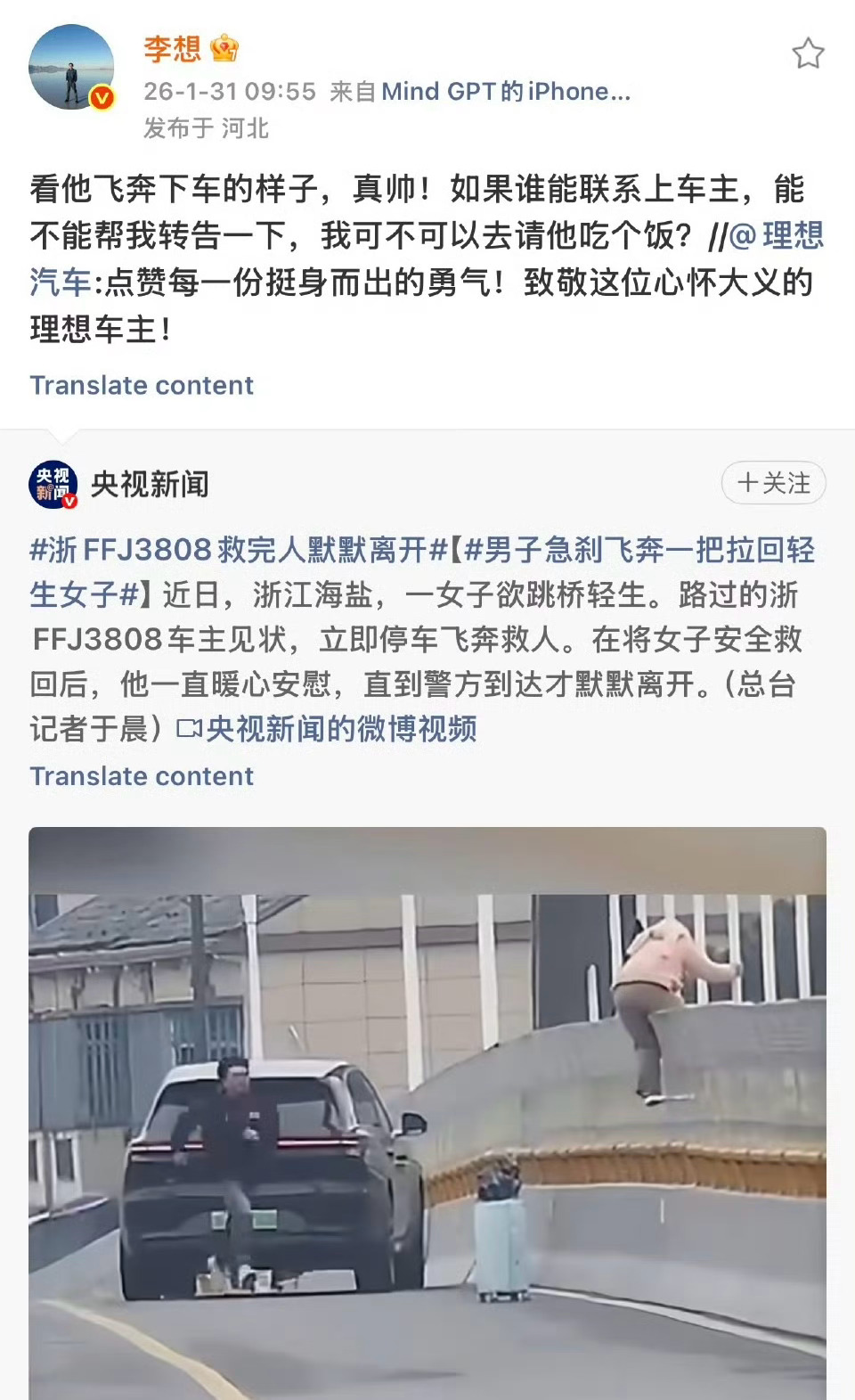 李想到海盐请救人车主吃饭 好人有好报,李想邀请救人的车主吃饭。