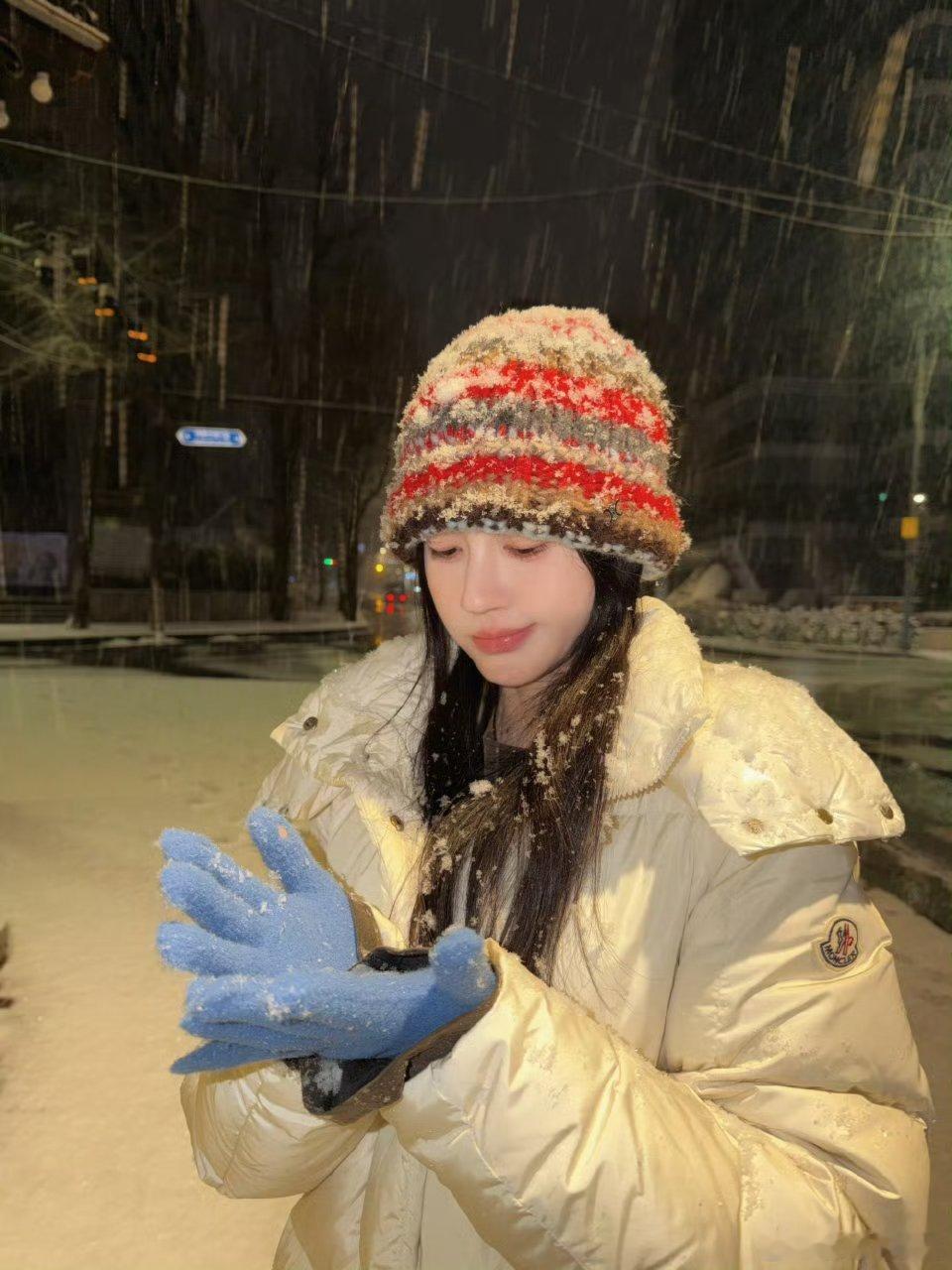 好厉害啊,之前尝试很多次都失败了雪花和美女很相配哦。