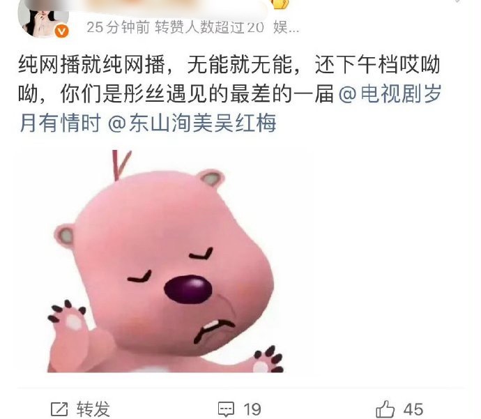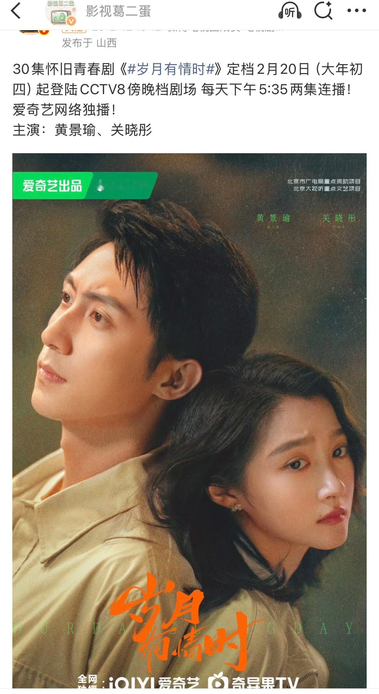 因为黄景瑜和关晓彤的新剧《岁月有情时》被安排央八下午档,粉丝正在对片方进行一个大麻辣~