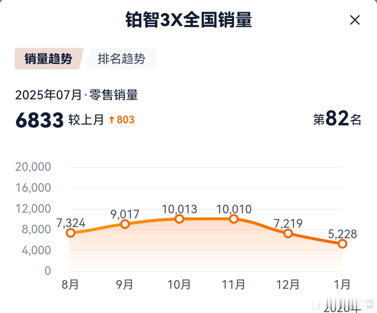 SUV比轿车生命力旺盛,丰田铂智3X在淡季的销量波动相比日产N7小太多。