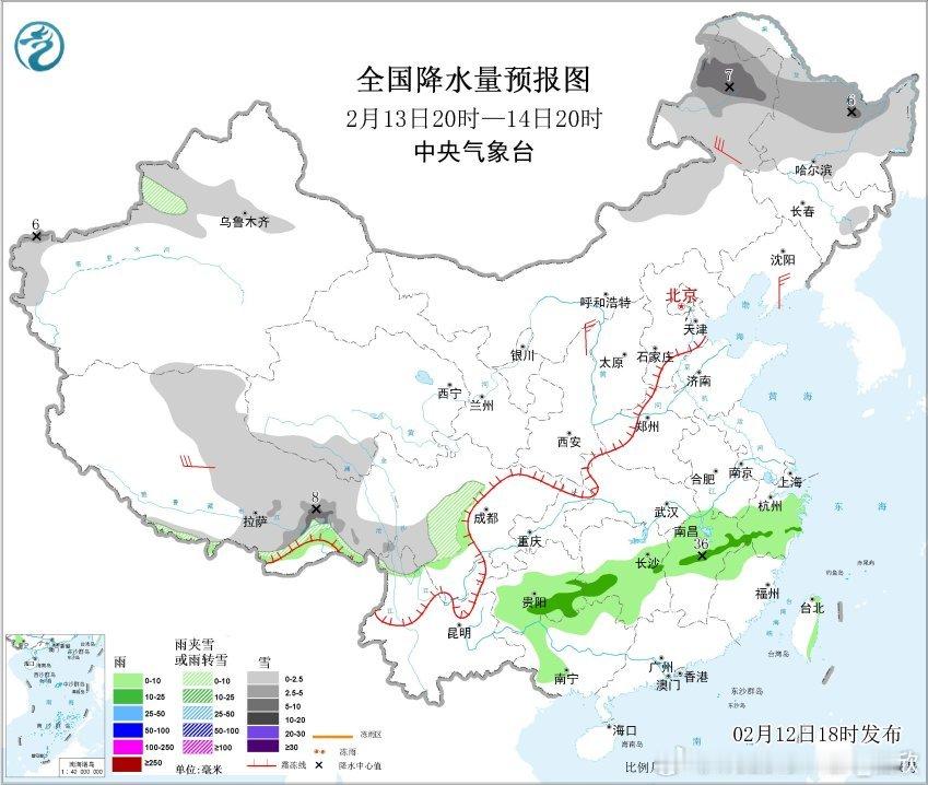 【降水】昨晚到今天,新疆北部部分站点出现大雪。贵州广西湖南江西部分地区出现小雨。未来3天,新疆北部还有降雪,而且13日晚-14日,内蒙古东部和黑龙江多地降雪也会发展增多。南方地区未来3天,降雨也会增多。14日晚-15日,湖南北部、江西北部可能还有大雨,并伴随雷电。