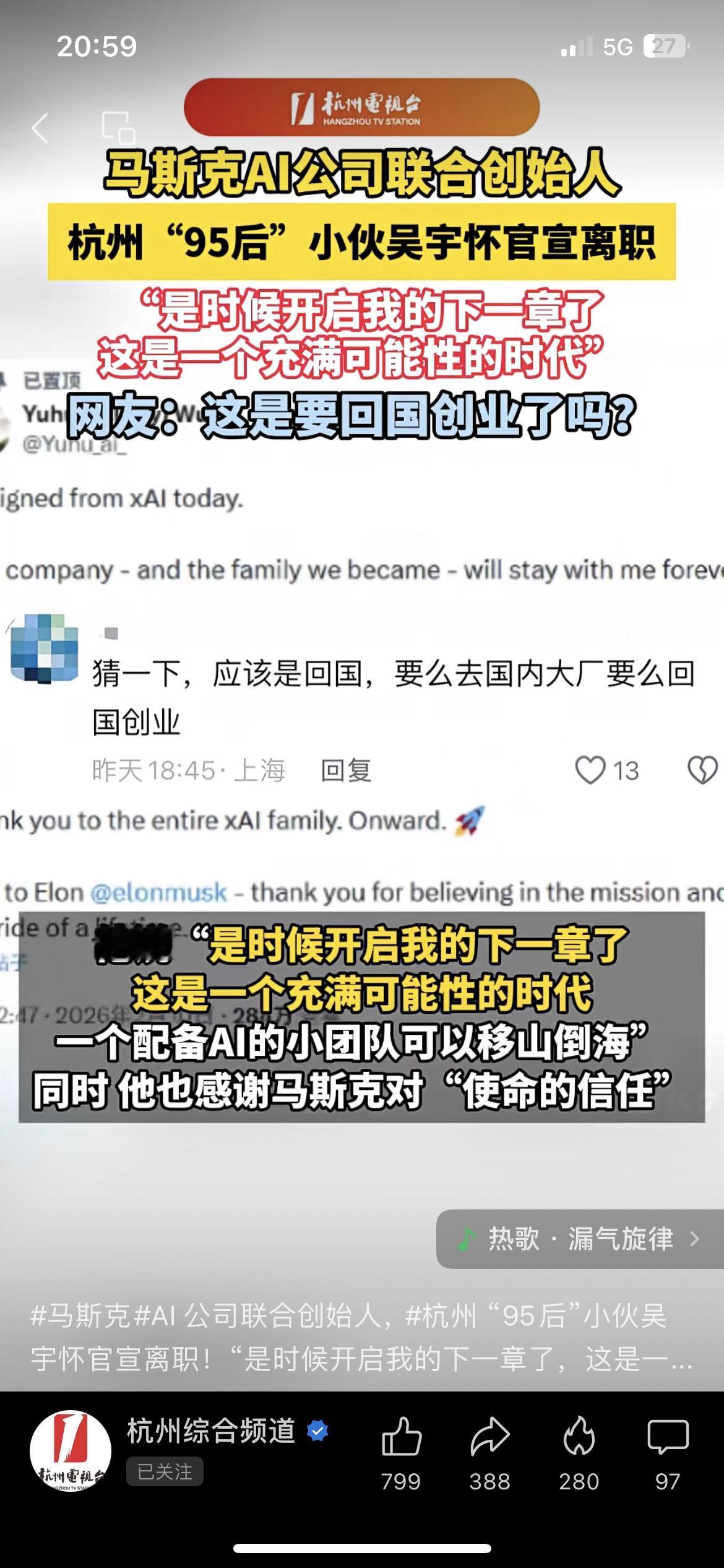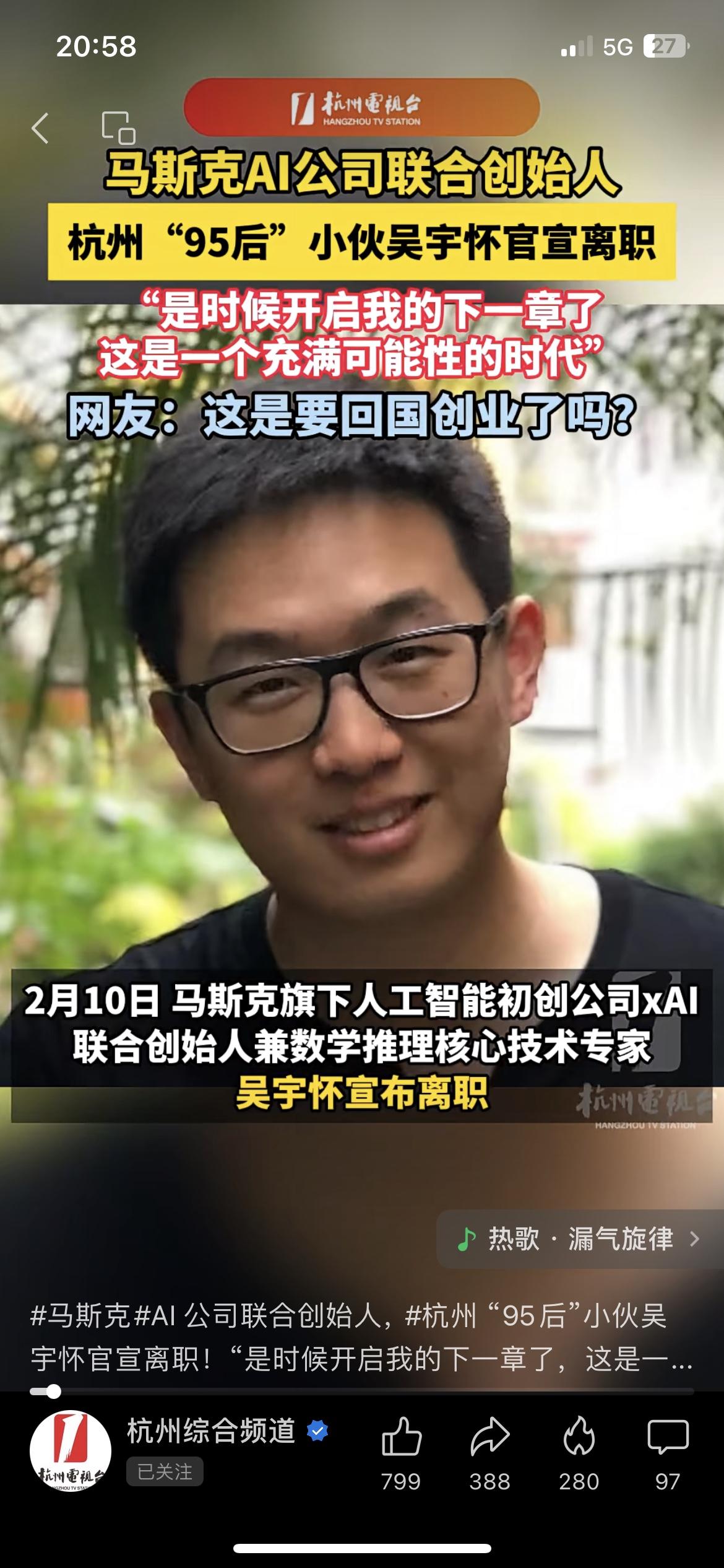 马斯克旗下再失核心成员!xAI95后联合创始人吴宇怀正式离职,此前特斯拉也出现多名高管辞职,员工反映高强度工作节奏带来较大压力。马斯克回应称,很少出现令人后悔的人员离职。这不是简单的人员流动,而是高压模式下科技企业共同面临的管理课题 你觉得高强度管理会影响企业长期发展吗? 马斯克人才流失 xAI吴宇怀离职 特斯拉高管离职