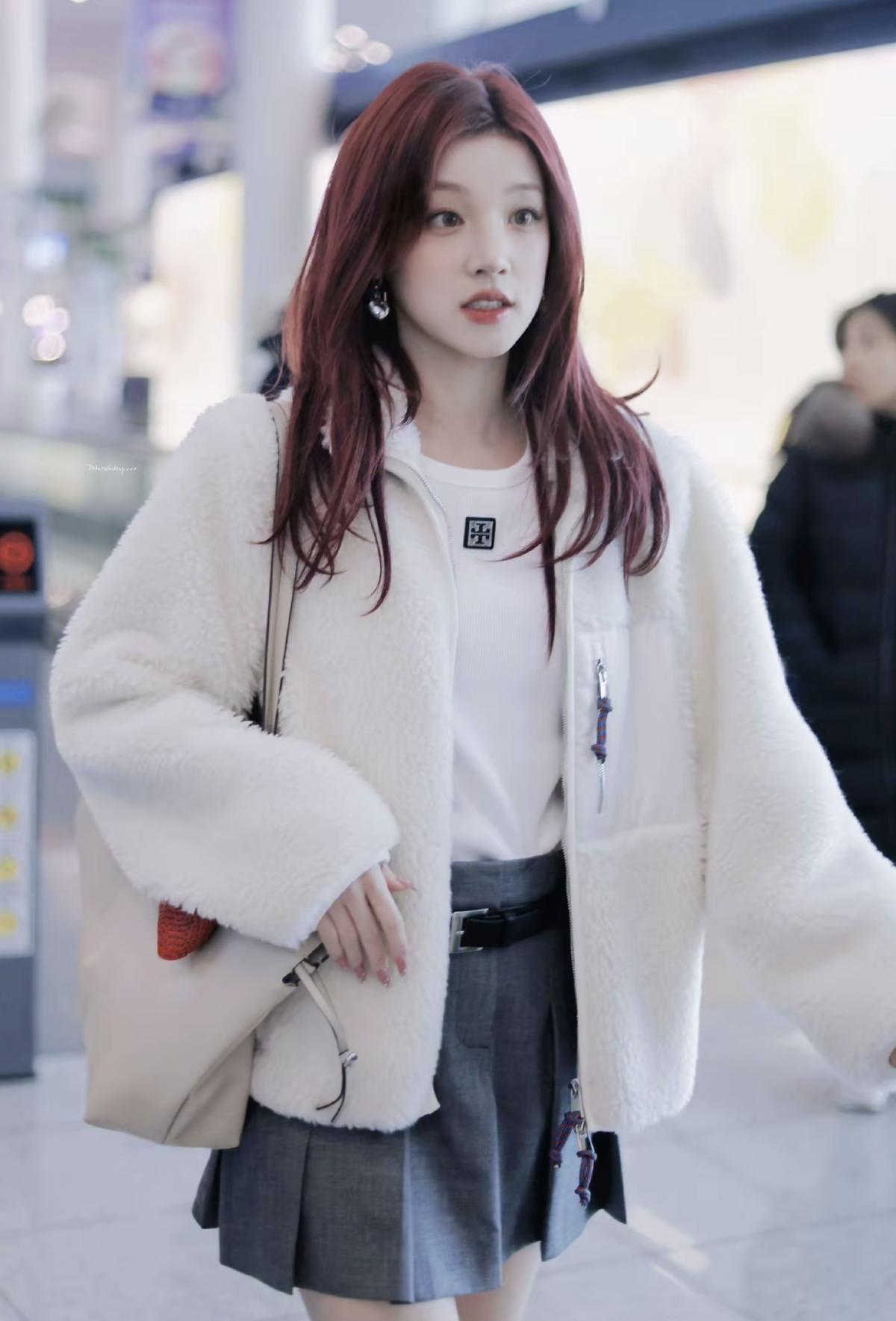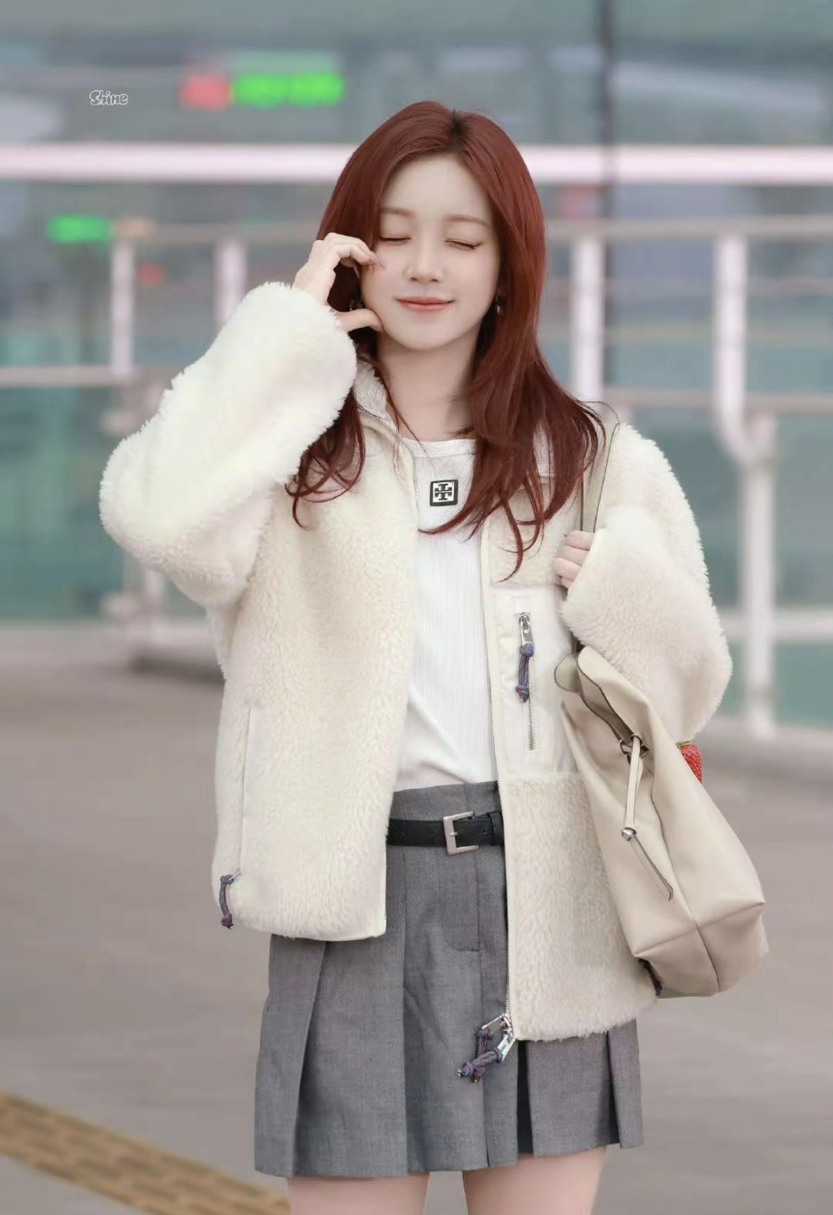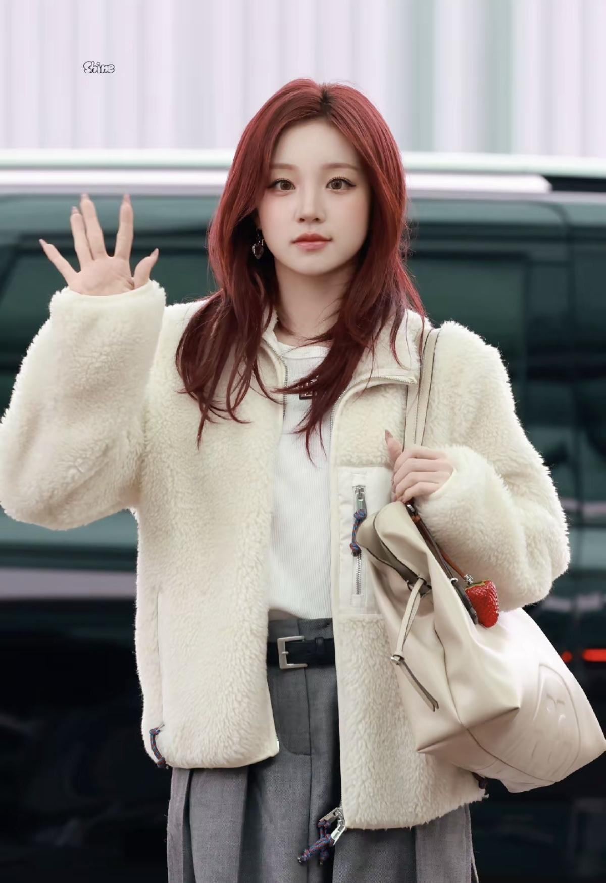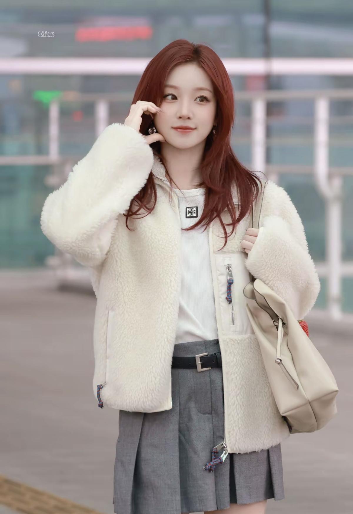 红发宋雨琦出发纽约时装周啦✨ 奶fufu的羊羔毛外套也太温柔了,甜妹感直接拉满[比心]娱乐明星