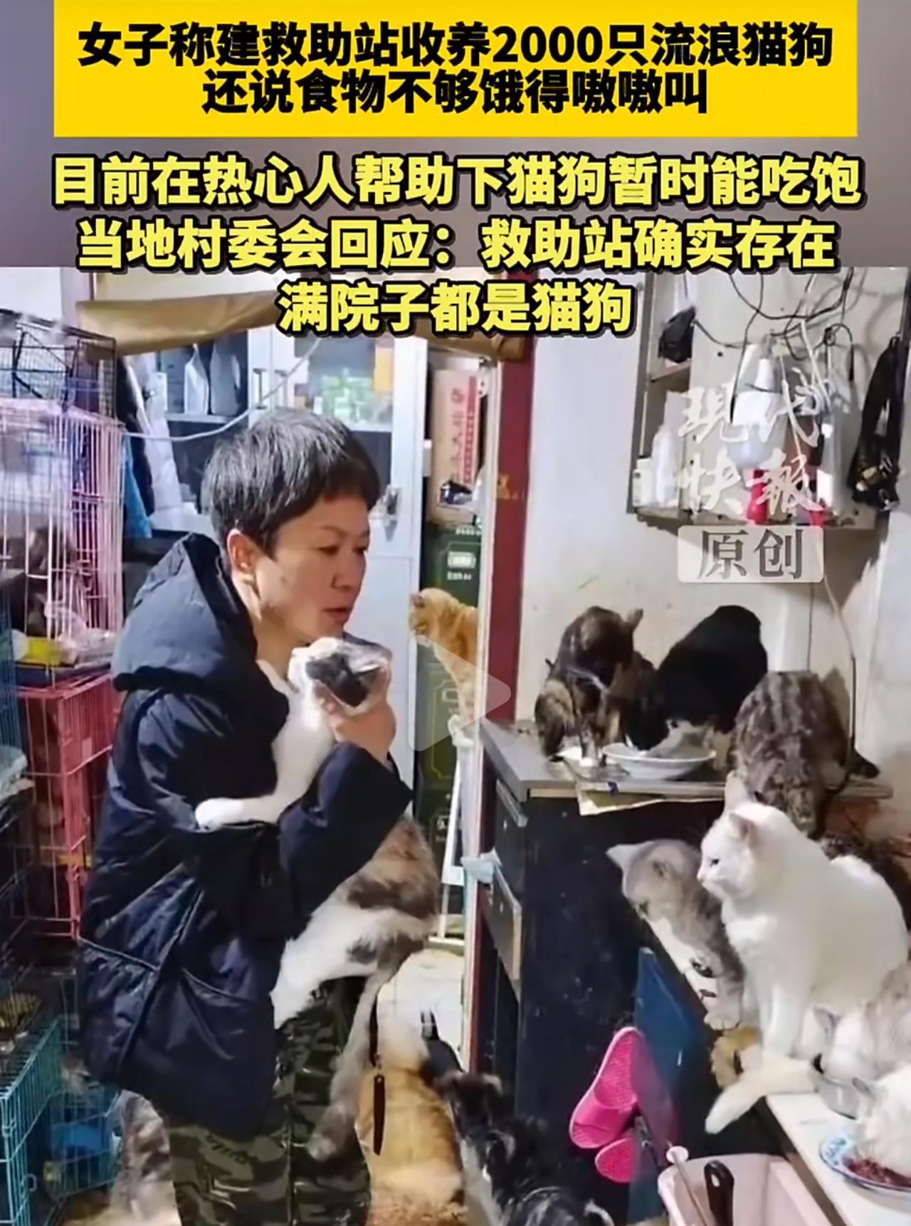 一个人养了快2000只流浪猫狗,还欠了医院二十多万,真的又心酸又让人佩服。 黑