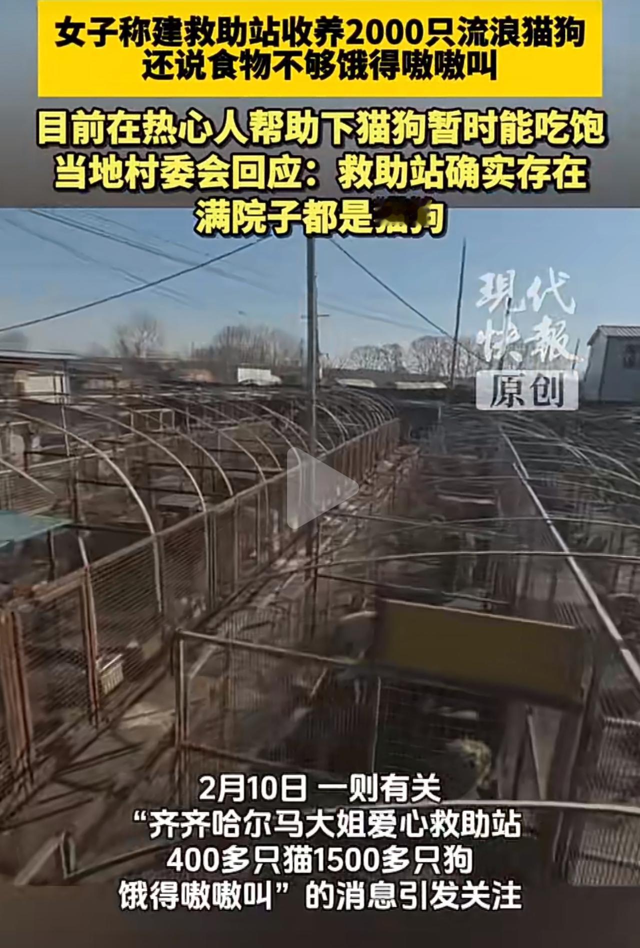 一个人养了快2000只流浪猫狗,还欠了医院二十多万,真的又心酸又让人佩服。 黑龙江齐齐哈尔的马大姐,自己办了个流浪动物救助站,收留了一千多条狗、四百多只猫,一天光粮食就得消耗1500斤。 只要小动物还有救,她就坚决不放弃,有病就带去治,从来不肯安乐死,也正是因为这样,才慢慢欠下了二十多万的医药费。 现在全靠大家捐点东西,猫狗们才能勉强吃饱,可看病的钱一直补不上。 不少人都特别敬佩她,东北这么冷的天,她一个人硬是保住了这么多条小生命。 也有人劝她,爱心也得量力而为,养得太多根本顾不过来,还是得靠领养、绝育这样更稳妥的方式。 好心从来都没错,可光靠一个人死撑,真的太难了。 只愿这些小生命都能被好好对待,也希望马大姐能早点渡过这个难关。流浪猫狗妈妈 流浪猫狗救援 流浪猫狗冬天