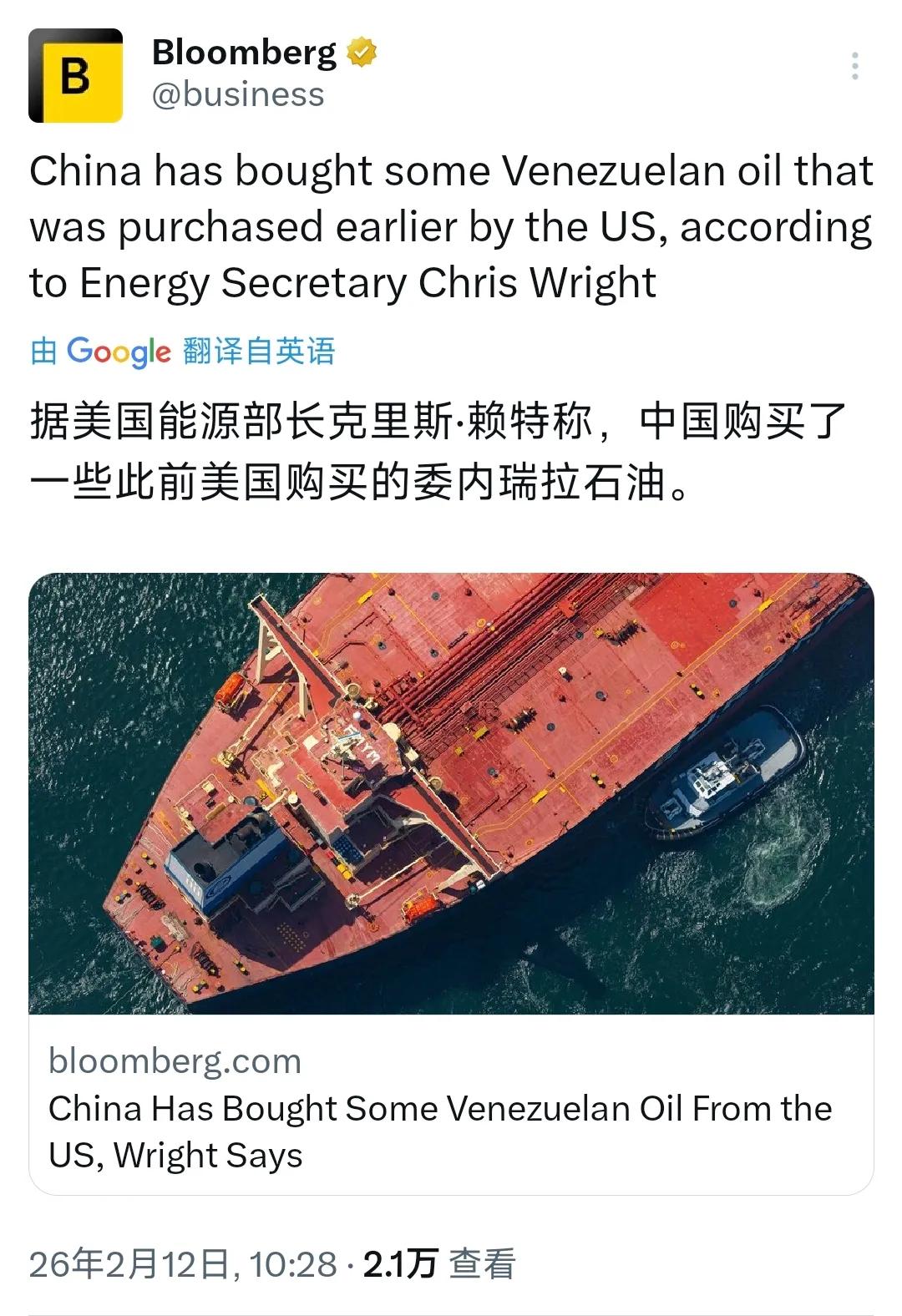 彭博社今天(2月12日)报道:“据美国能源部长克里斯·赖特称,中国购买了美国此购入的一些委内瑞拉石油。” 赖特的这番表态本质上是美国逮捕马杜罗后,试图将地缘政治冲突包装成纯粹商业交易的“洗白”行为。他特意强调“中国已购买”委内瑞拉石油,是想借中国的商业行为来证明美国对委石油的“控制权”是合法的、被国际社会接受的,从而掩盖其军事干预的侵略本质。同时,他抛出“欢迎中国参与”的论调,并非真心合作,而是想拉中国下水,让中国在事实上承认美国对委内瑞拉的控制,从而削弱中国在拉美的影响力。