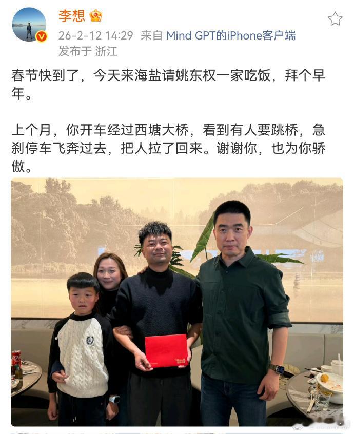 前段时间理想车主大桥救人,拉下轻生的女子。