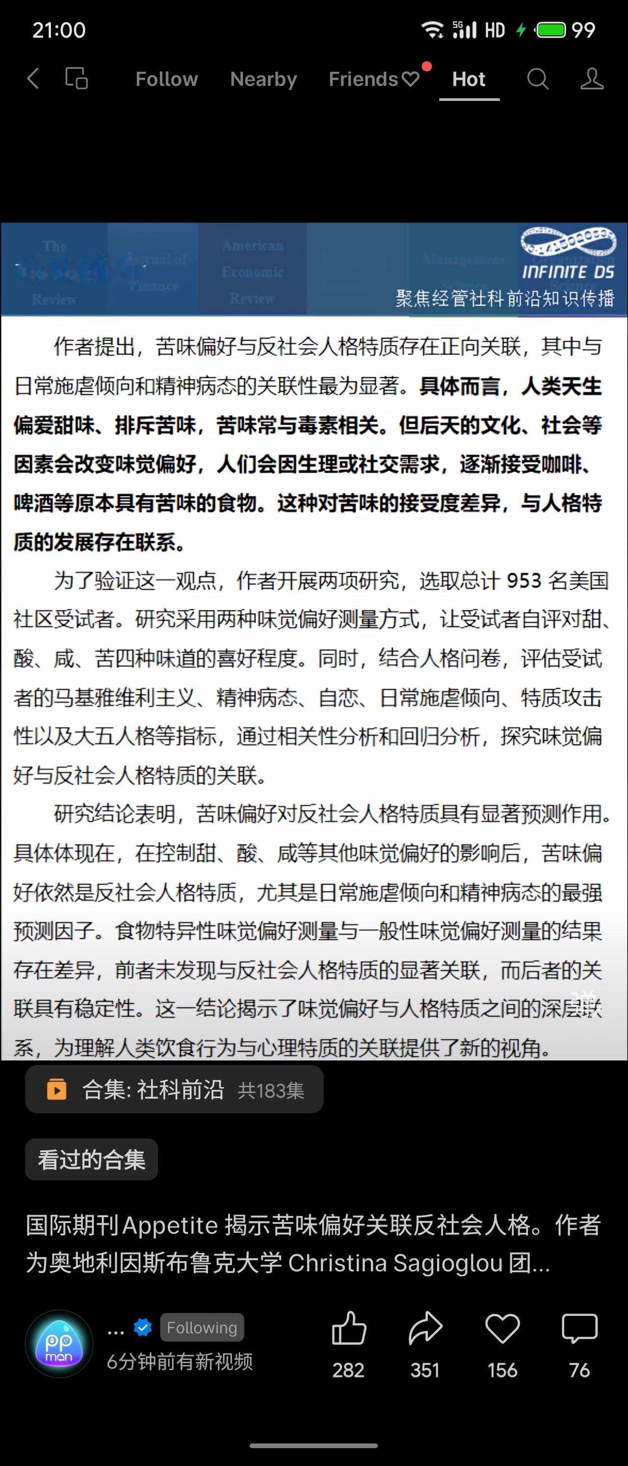 奥地利研究发现,苦味偏好与反社会人格显著正相关,尤其对日常施虐倾向、精神病态预测力最强。在控制甜、酸、咸口味后,苦味仍是核心因子。该结论挑战味觉仅为生理反应的常识,提示饮食偏好或可成为心理特质的潜在行为标记。