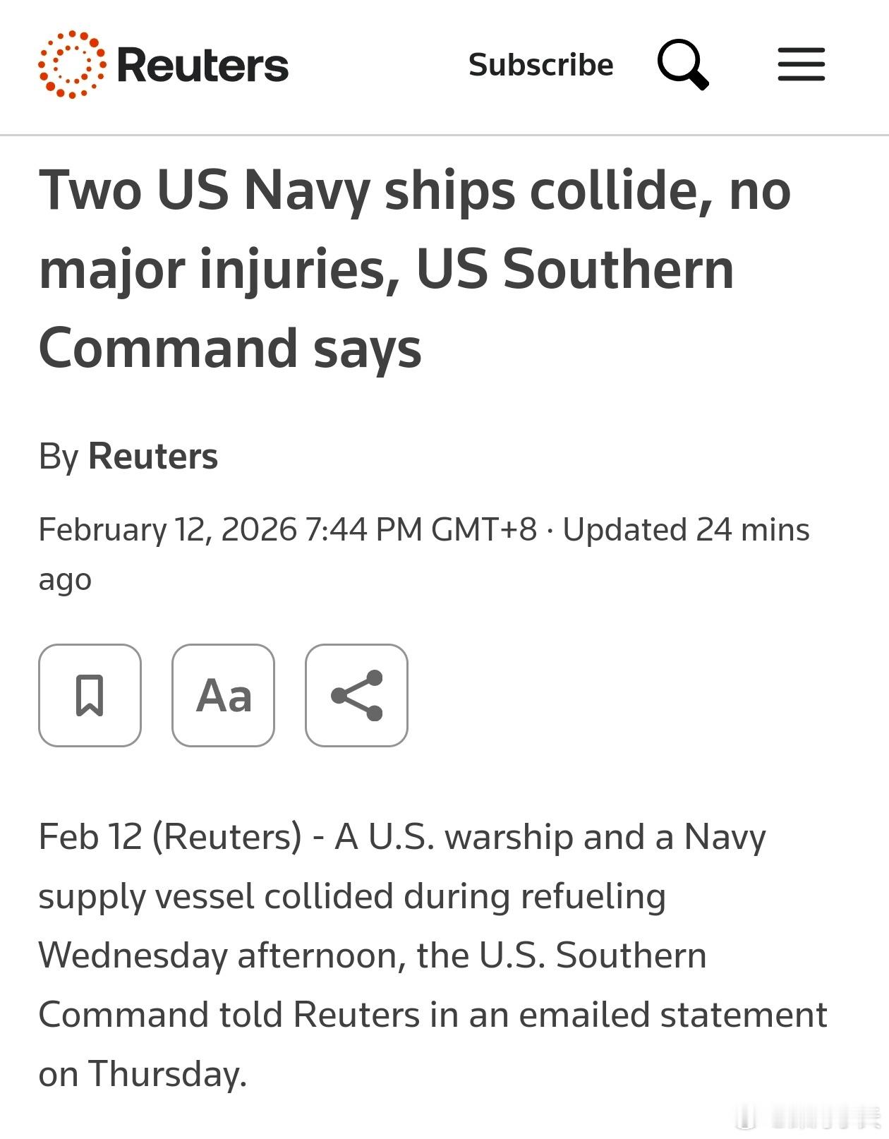 两艘美国海军舰艇发生碰撞据路透社,2026年2月11日下午,美国海军两艘舰艇在加勒比海(属于美国南方司令部责任区,靠近南美洲)进行海上补给作业时发生碰撞。 涉事舰艇为阿利·伯克级导弹驱逐舰,与快速战斗支援补给舰。成龙也想下海了