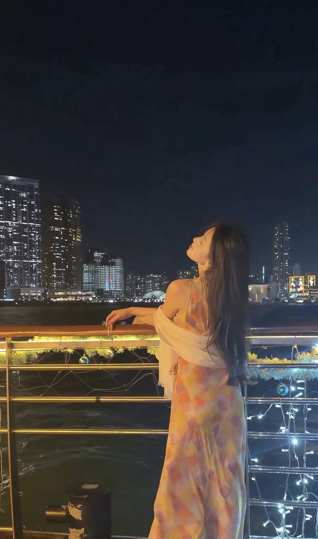 都市夜景就像一块天然的幕布,为时尚少女们提供了绝佳的舞台。瞧那自信微笑的少女,