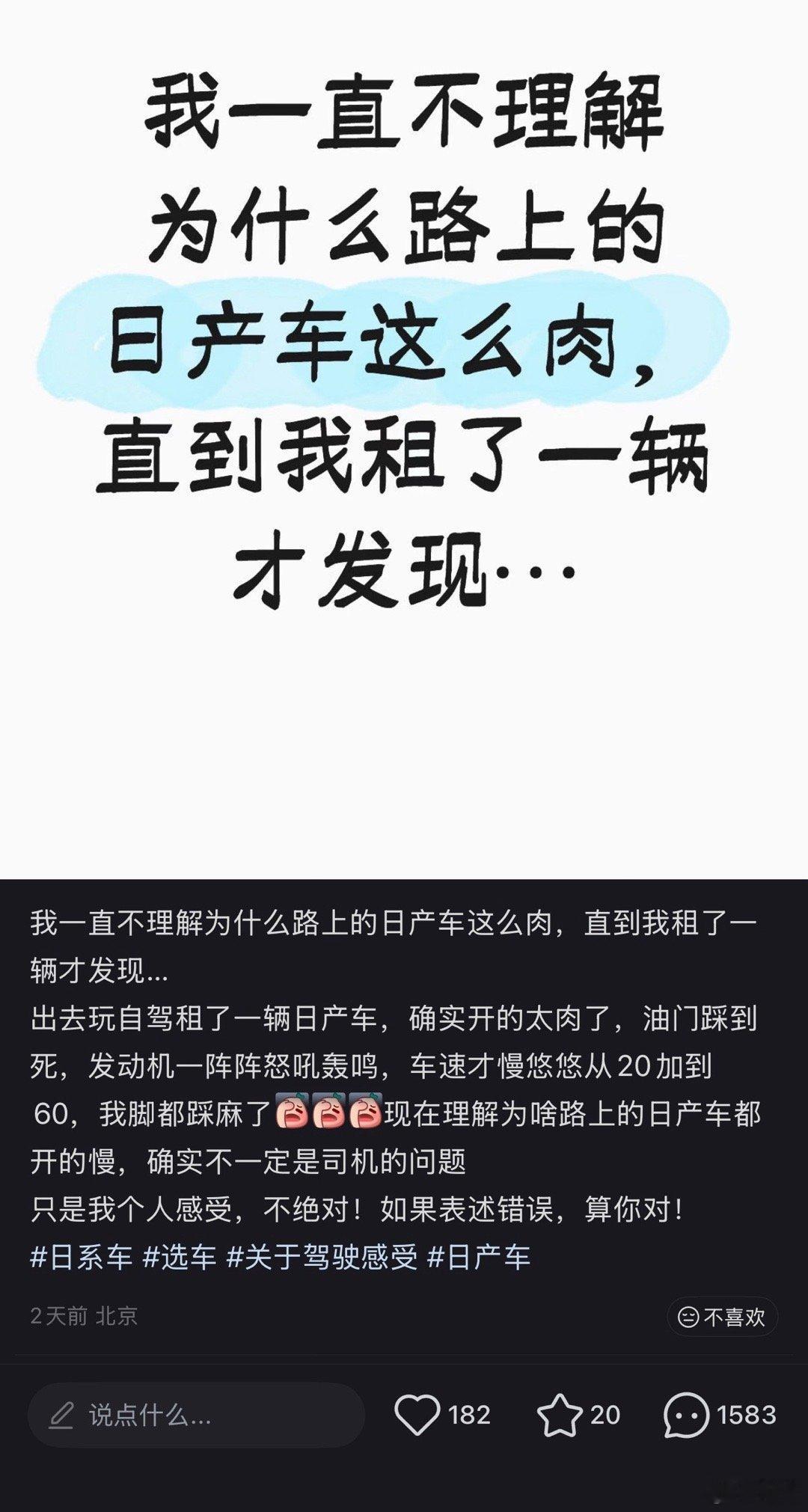 这种挑起对立的,不是没开过日产就是压根儿没开过几辆车,评论区炸出一堆同类经典懂的越少越喜欢下结论。反正现在就是要不然迎合不懂的,要不然发爆论迎合另一波不懂的,好好说反而不受待见