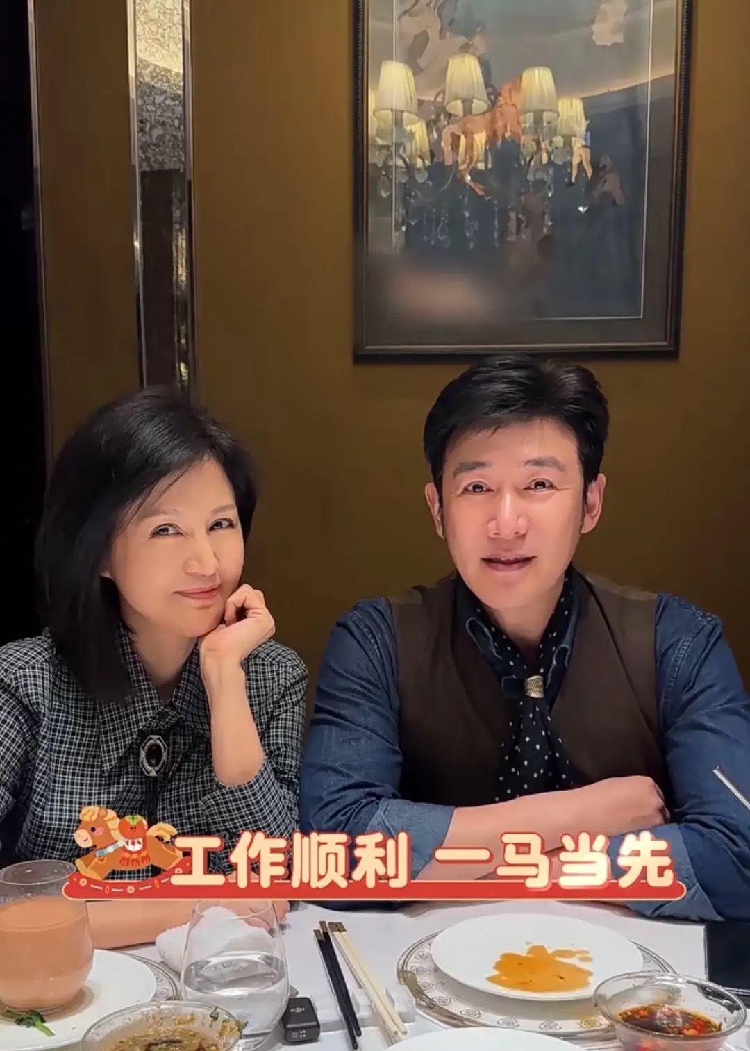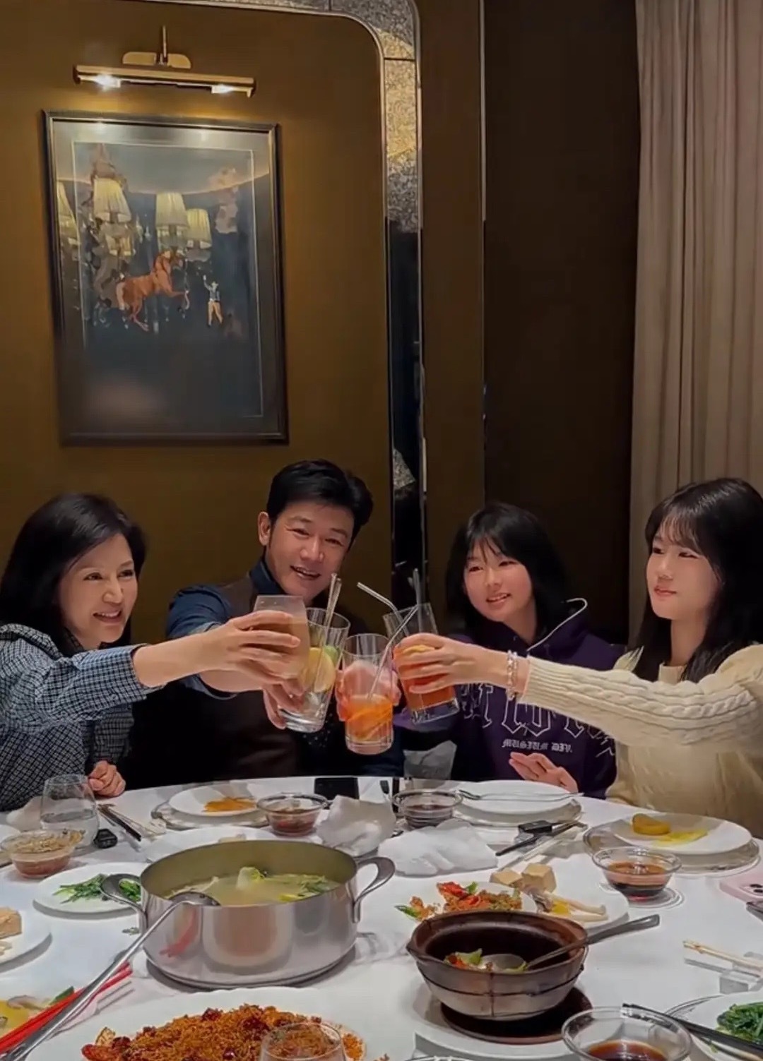 陆毅和鲍蕾一家人分享小年夜饭合影,祝福大家工作顺利,一马当先!