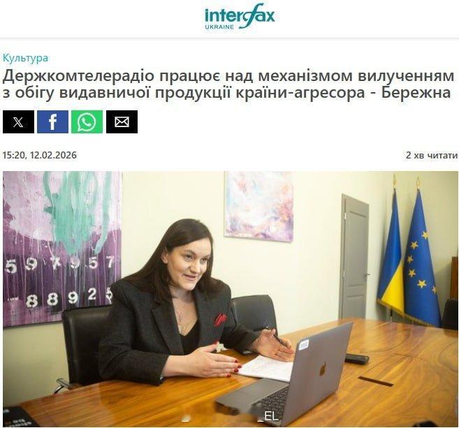 乌克兰文化部长塔季扬娜·别列日纳娅表示,乌政府可能将封禁俄罗斯及俄语文学作品,乌国家电视与广播委员会已着手起草相关决议草案。