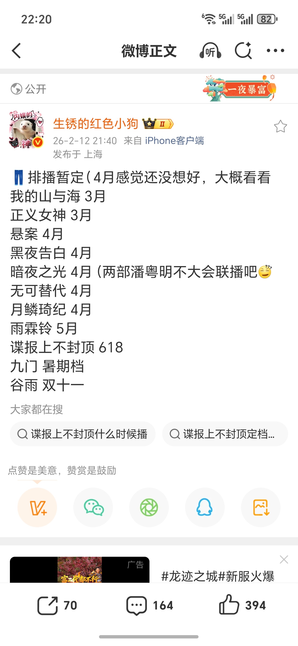爱奇艺未来几个月排播