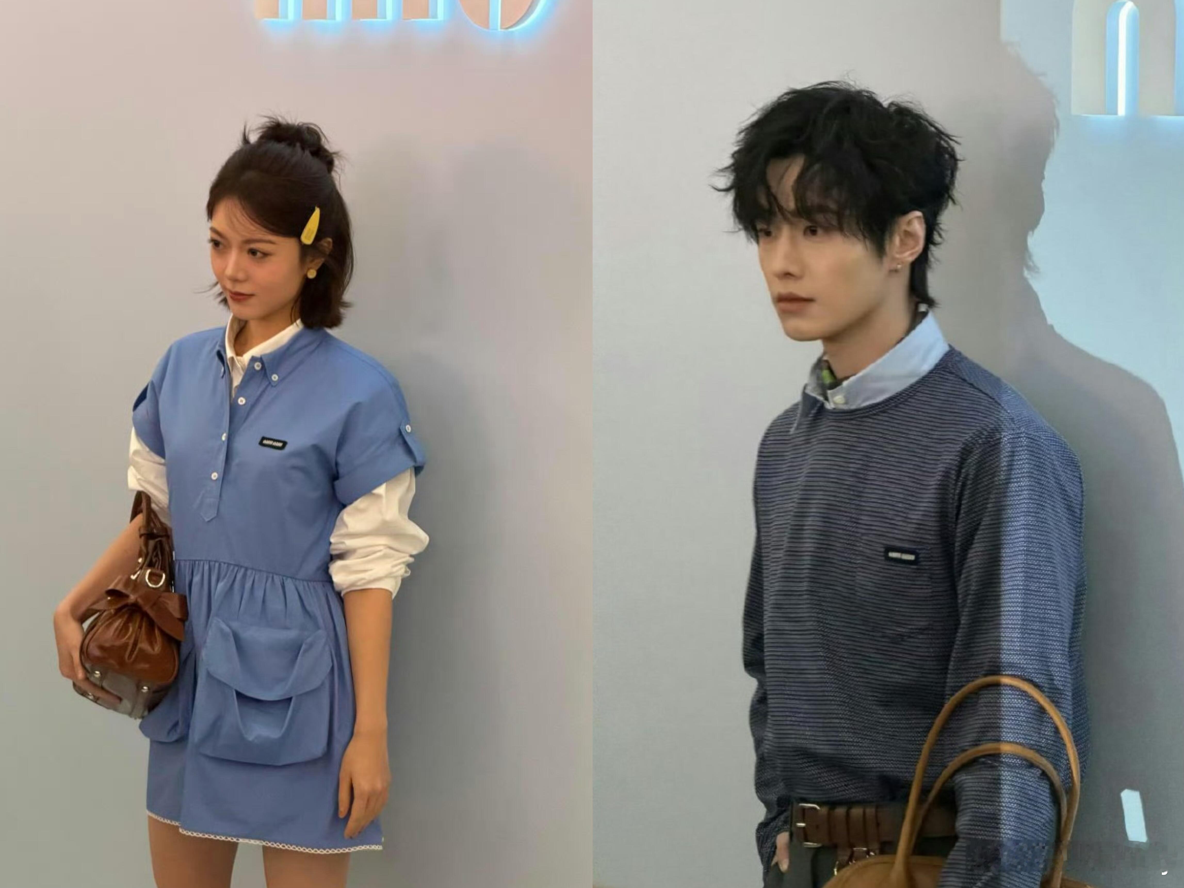 赵今麦何与MiuMiu活动生图赵今麦、何与杭州Miu Miu活动蓝色清爽感学姐与学长,男帅女美太养眼了!