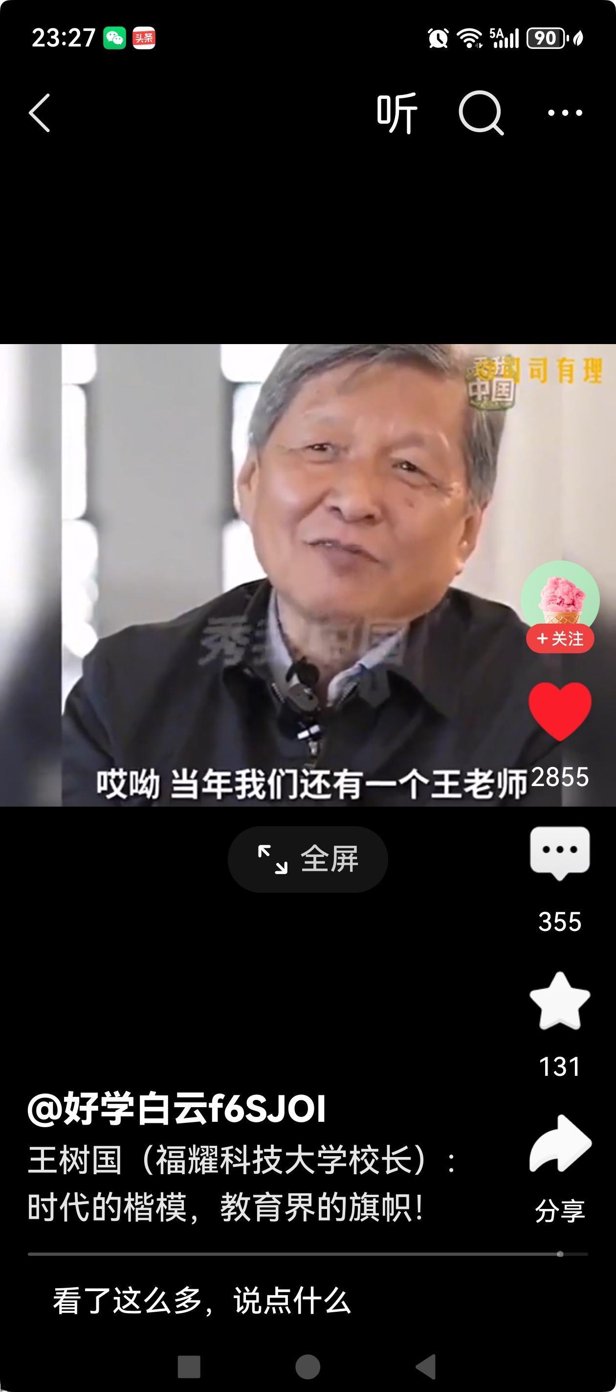 王树国在谈起自己退休后选择担任福耀大学校长时说,已经年龄很大了,就剩这么一点点精力,“小蜡烛”还剩这么一点点,为了教育就把它烧光吧,燃尽还能发一点光,贡献一点热。 在媒体刚刚透露他要去福耀大学任职的时候,曾经有过一些议论,有人甚至猜测他会拿多少年薪。当他在接受央视专访时,说出自己一分钱年薪都不拿的时候,舆论场沉默了。什么是情怀,王树国校长用自己的行动给出了答案。 他觉得这个时代有这么一个大的机遇,需要所有的中国人能够共同努力,为我们这个民族复兴,做一点积极的贡献,哪怕是一点点都是有价值的。他说,如果担心别人怎么看,那就太看重自己了,因为每个个体都是微不足道的,在历史的长河中,都像一粒沙子,真没必要把自己的名利看的太重。做好自己,对得起自己,对得起国家就挺好了。 话很朴实,一如他低调严谨的做事风格。看过他不少没有讲稿的演讲视频,总是那么让人感到鼓舞,仿佛每句话都能直达心灵。有了像王树国这样有家国情怀的知识分子群体,是国家之幸,是教育之幸!