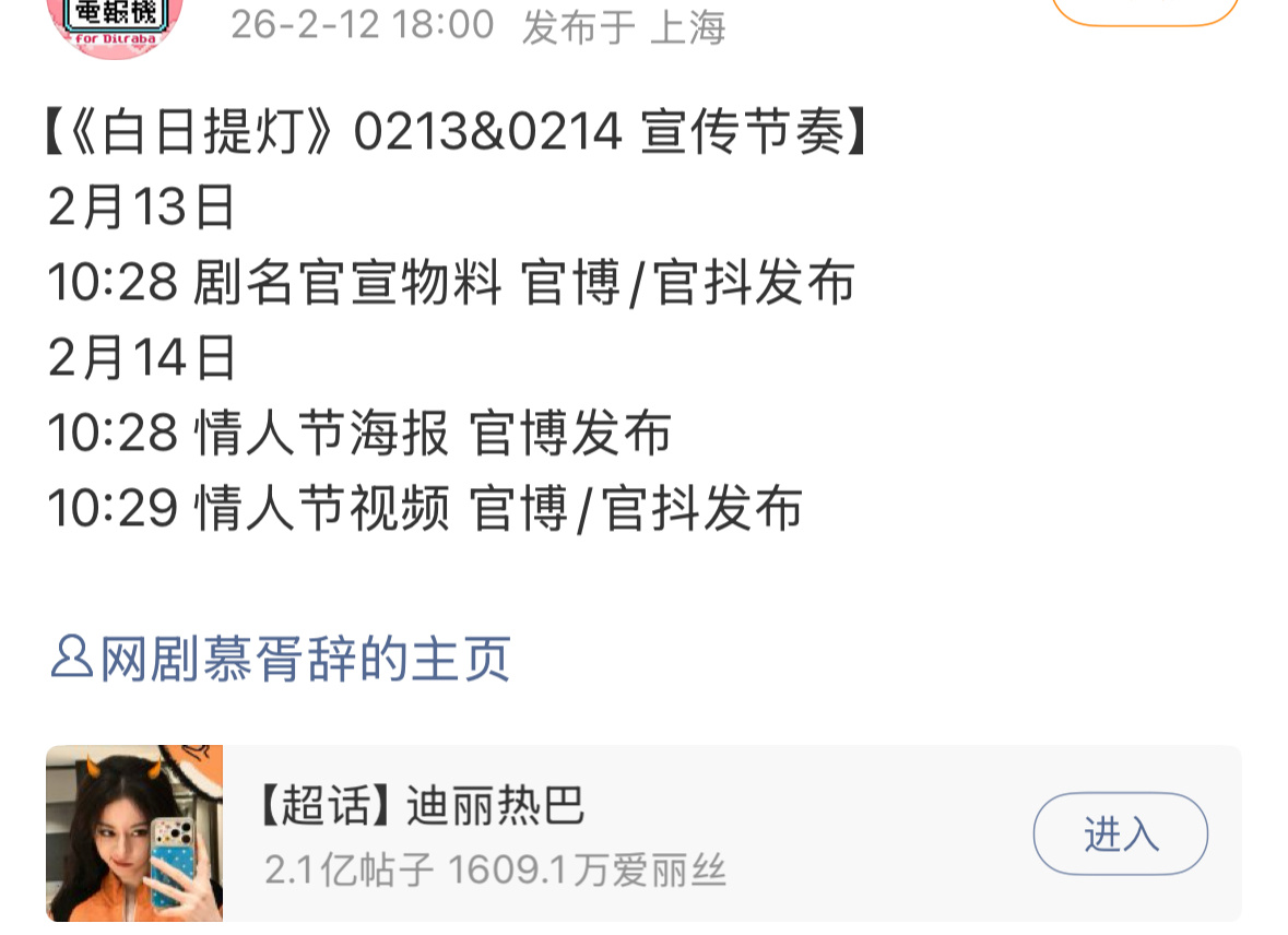 迪丽热巴 陈飞宇 白日提灯宣传物料发布预告3月要播了